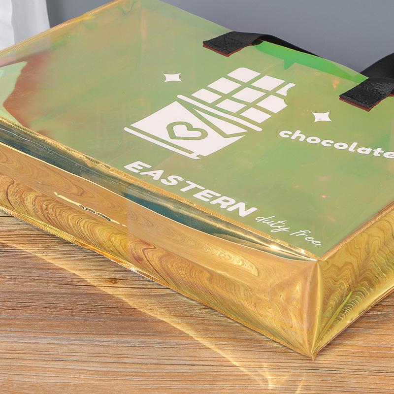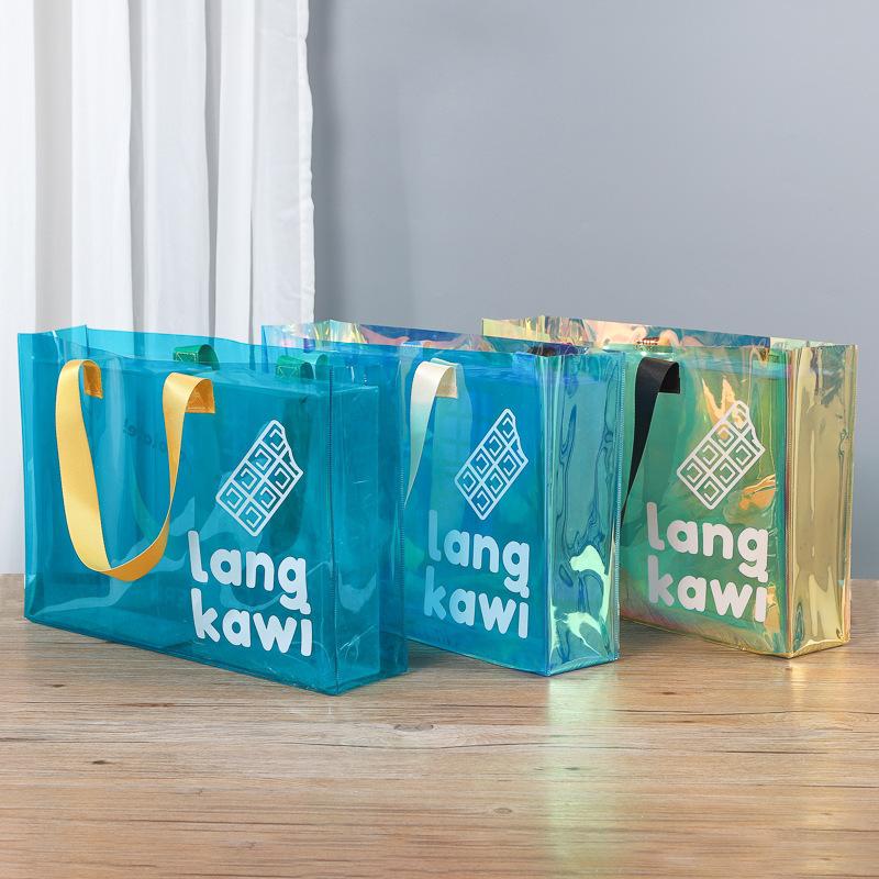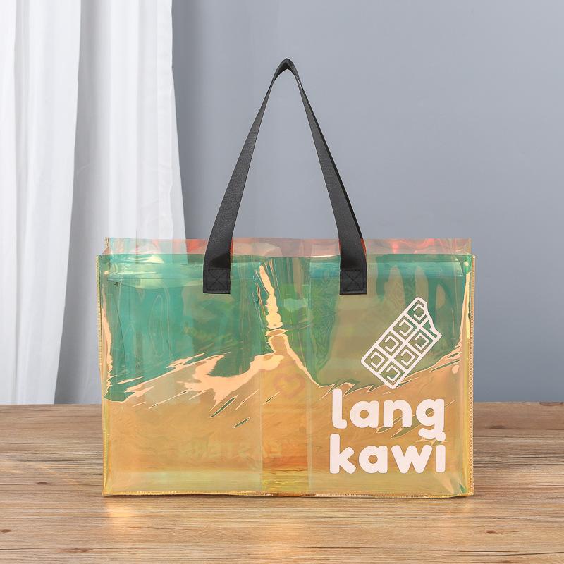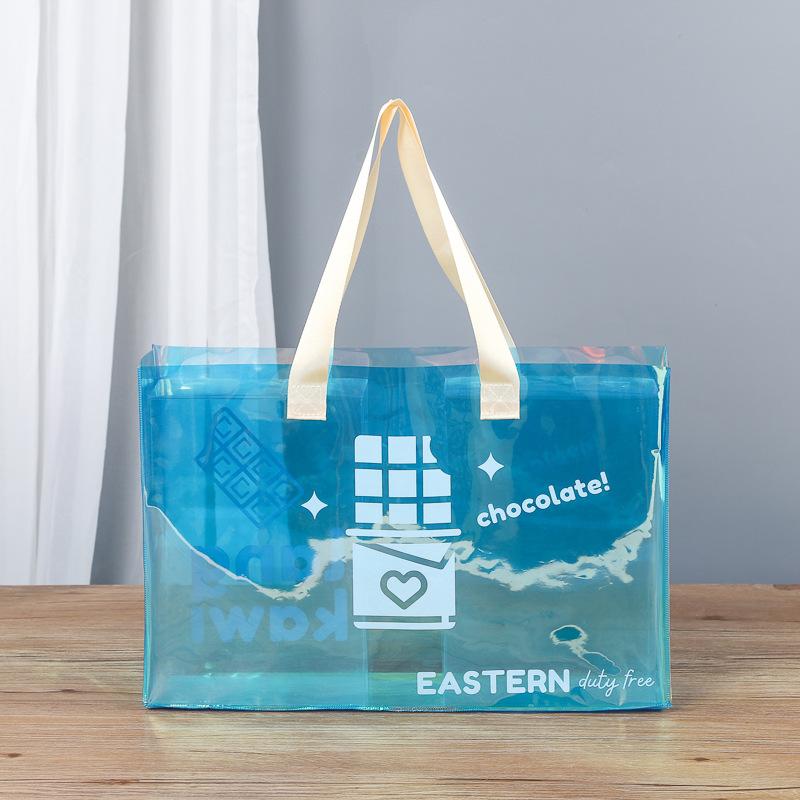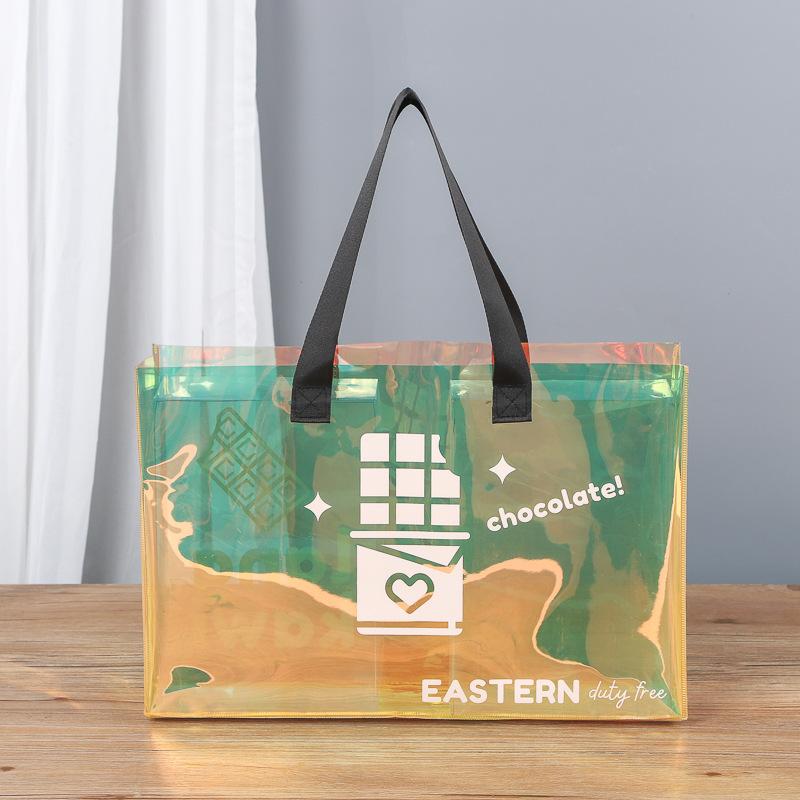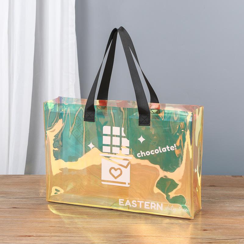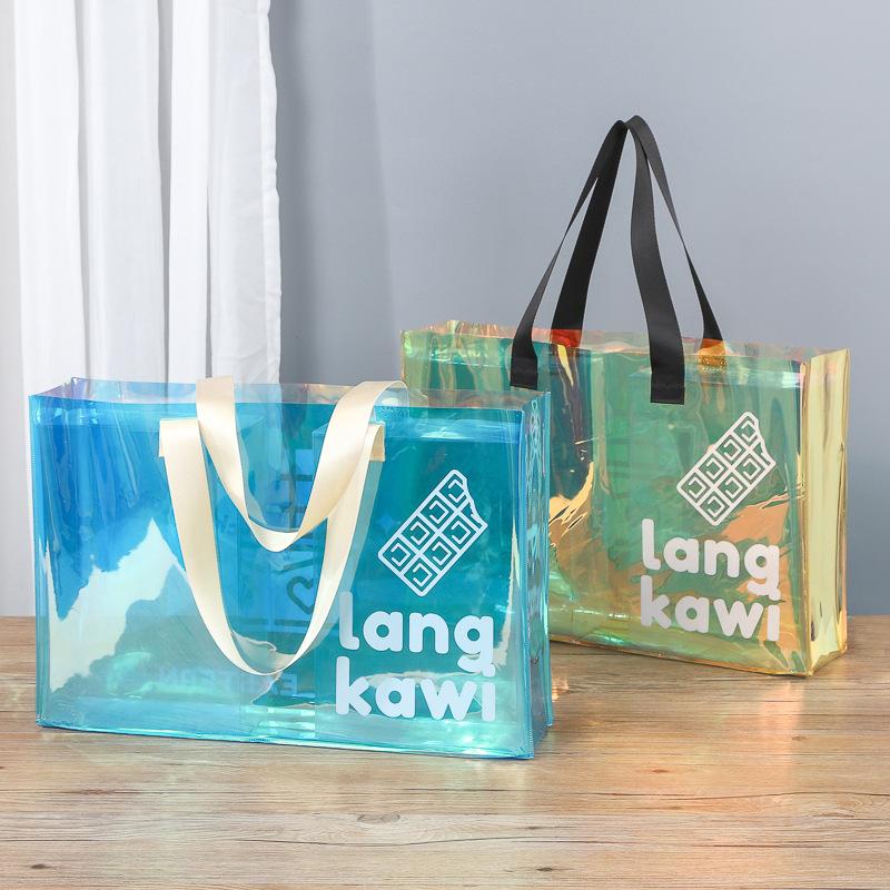 Bolsa de regalo de plástico transparente de PVC, venta al por mayor, bolsa de regalo simple de PP transparente con logotipo impreso.