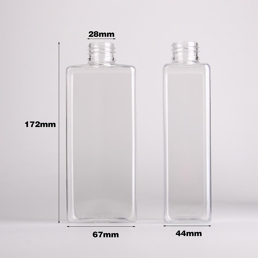Botella cuadrada plana de plástico PET transparente de grado alimenticio de 400 ml Botella para jugo Tienda de té con leche Jugo de kiwi Botella para envasado de bebidas