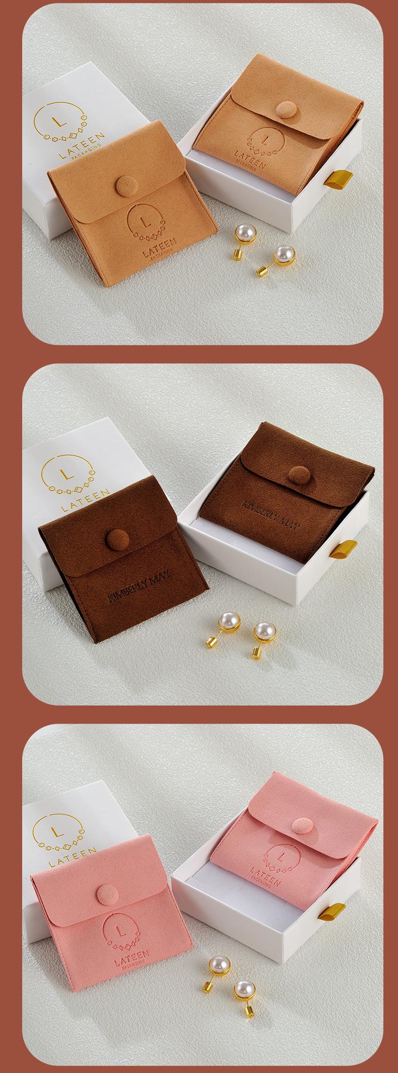 Nueva moda hebilla de tela lateral bolsa de joyería simple color sólido bolsa de terciopelo de microfibra embalaje universal bolsa de almacenamiento de joyas