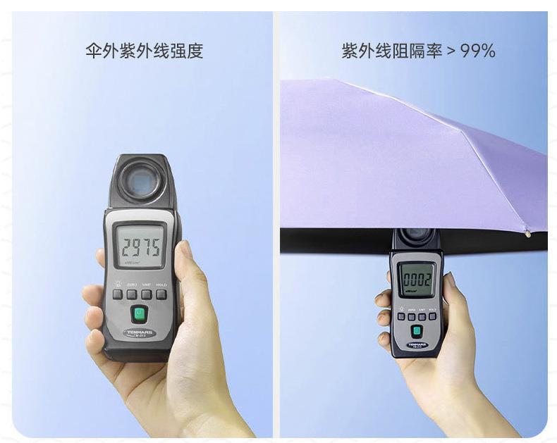 Paraguas publicitario de producción con pegamento negro, antiultravioleta, de 23 pulgadas, mango recto de espuma, capa interior rosa de fibra completa, apertura automática.