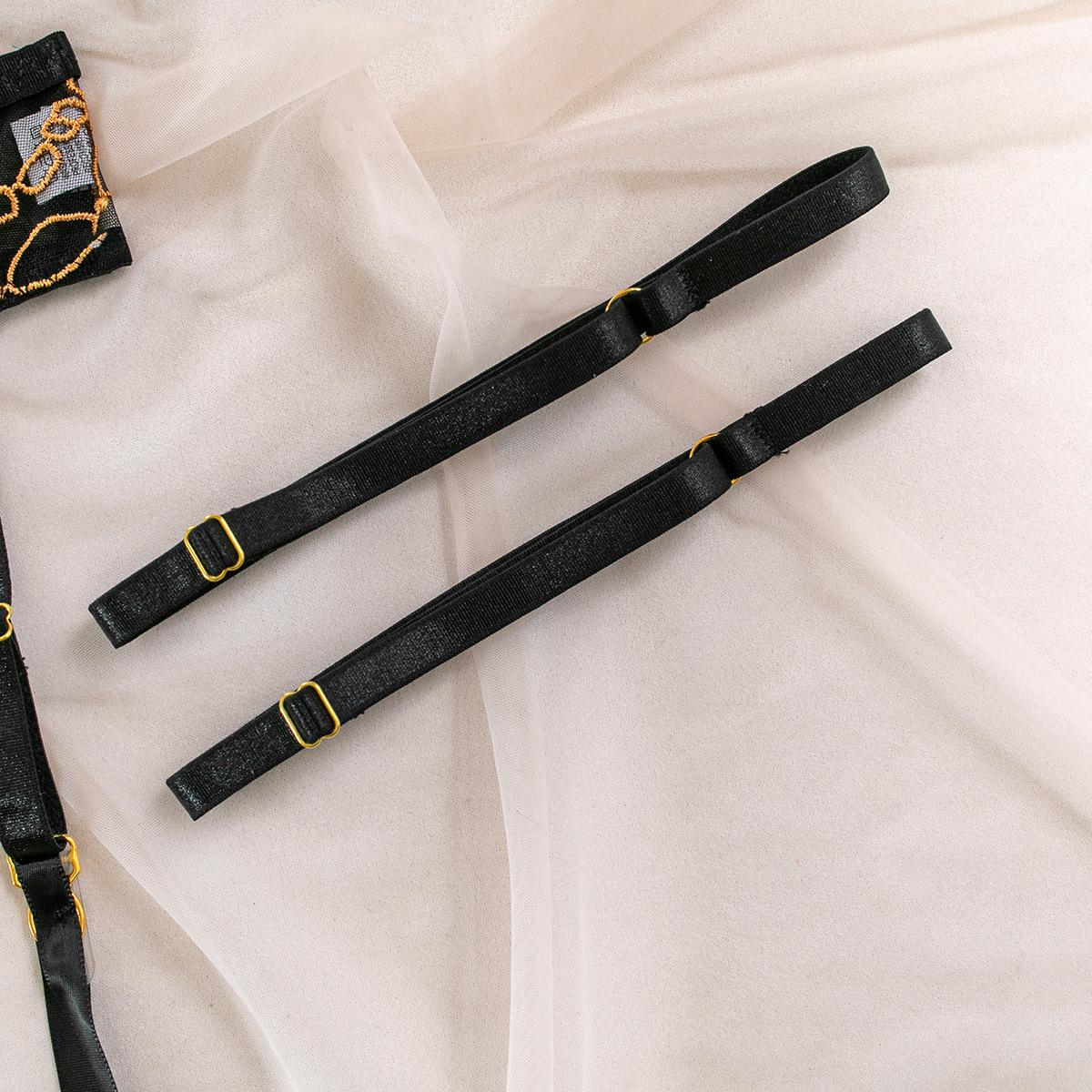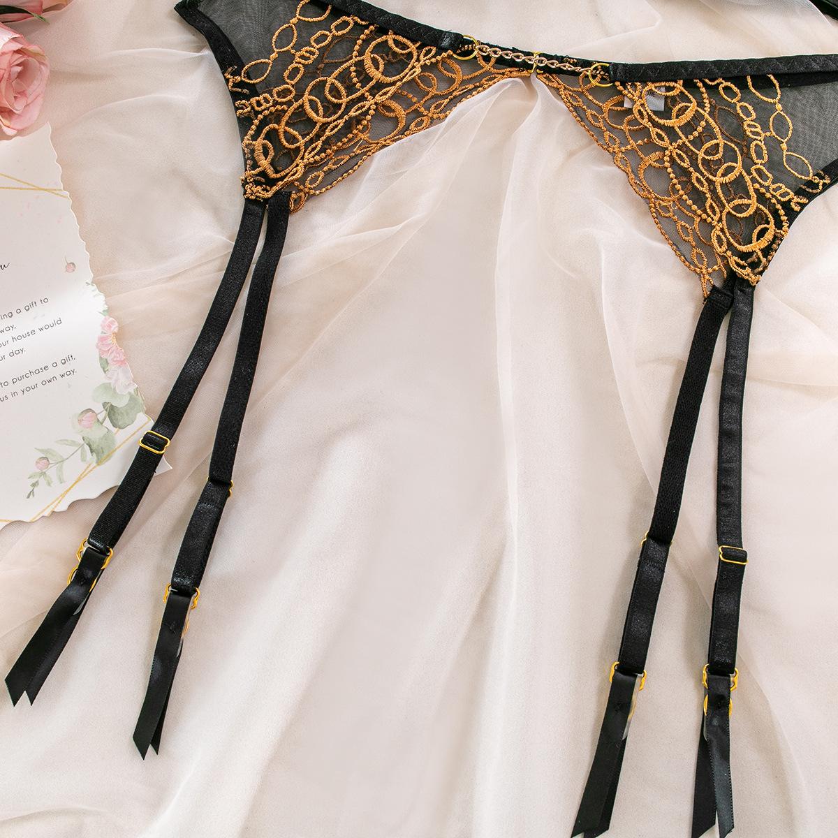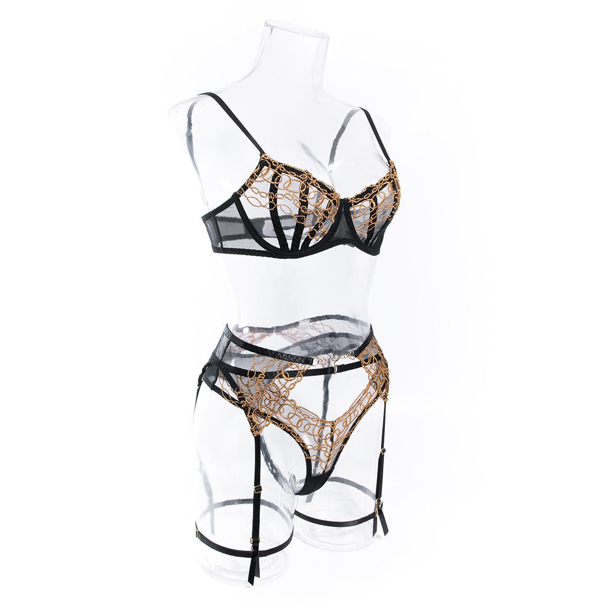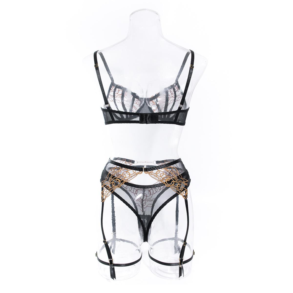 Lencería Sexy para Mujer Sexy Negro Bordado Sujetador Tanga Lencería Sexy Traje de Tres Piezas