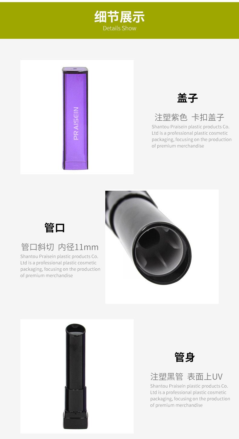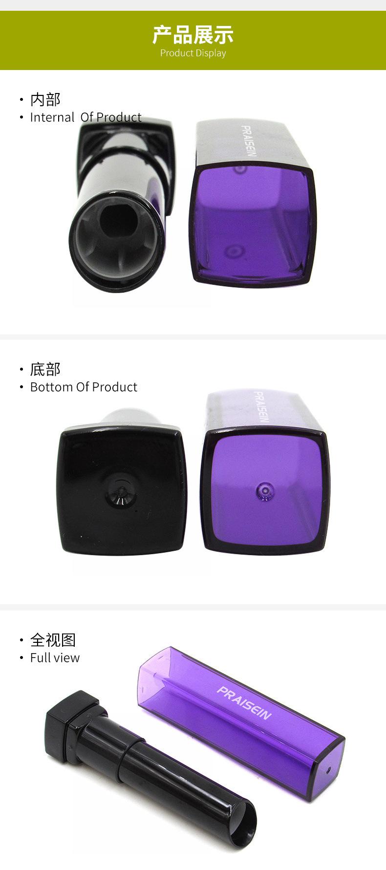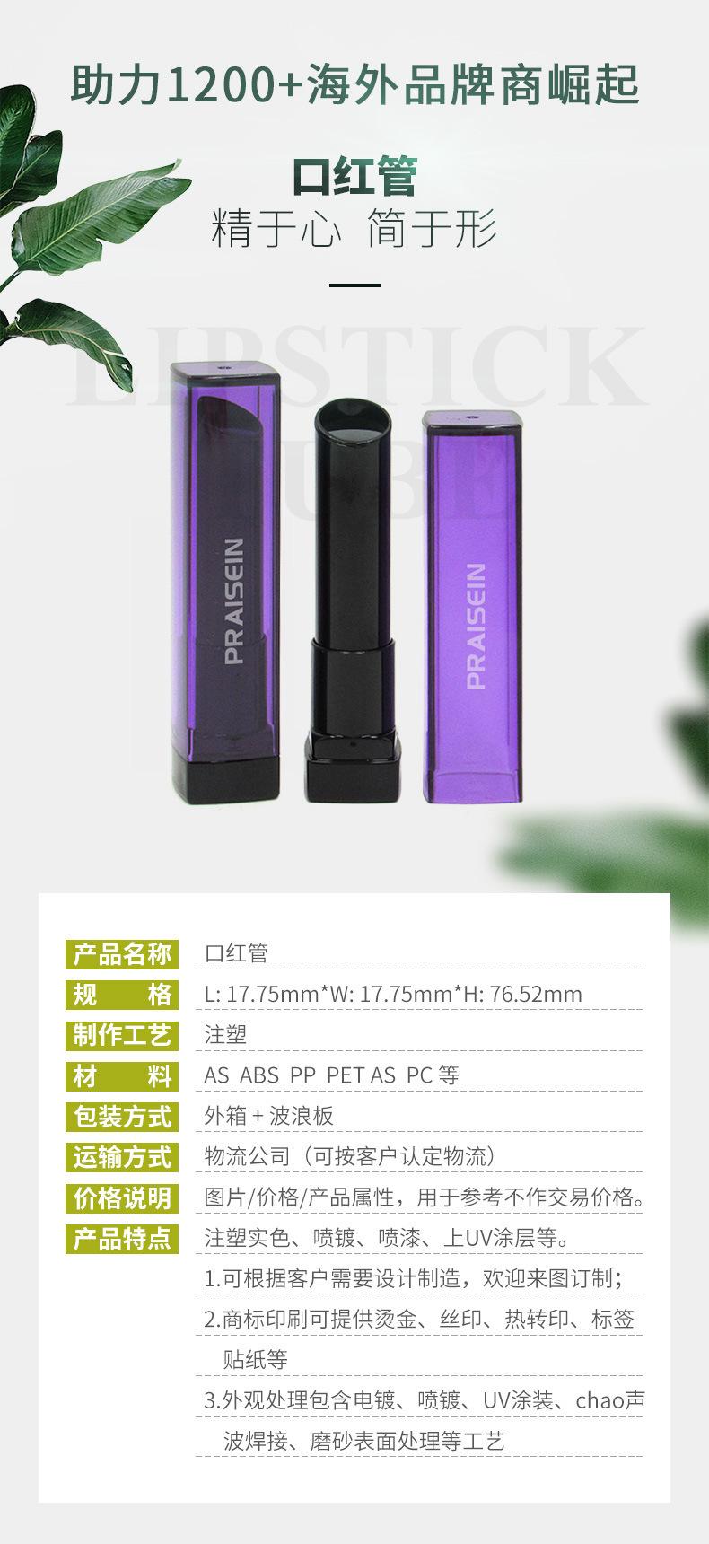 Tubo de lápiz labial cuadrado, personalizado, de plástico morado, oblicuo, tubo vacío, fábrica de embalaje cosmético