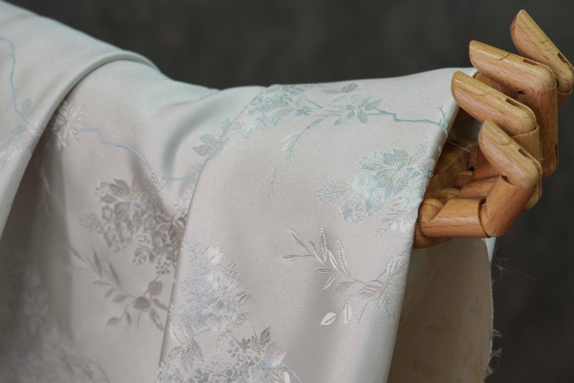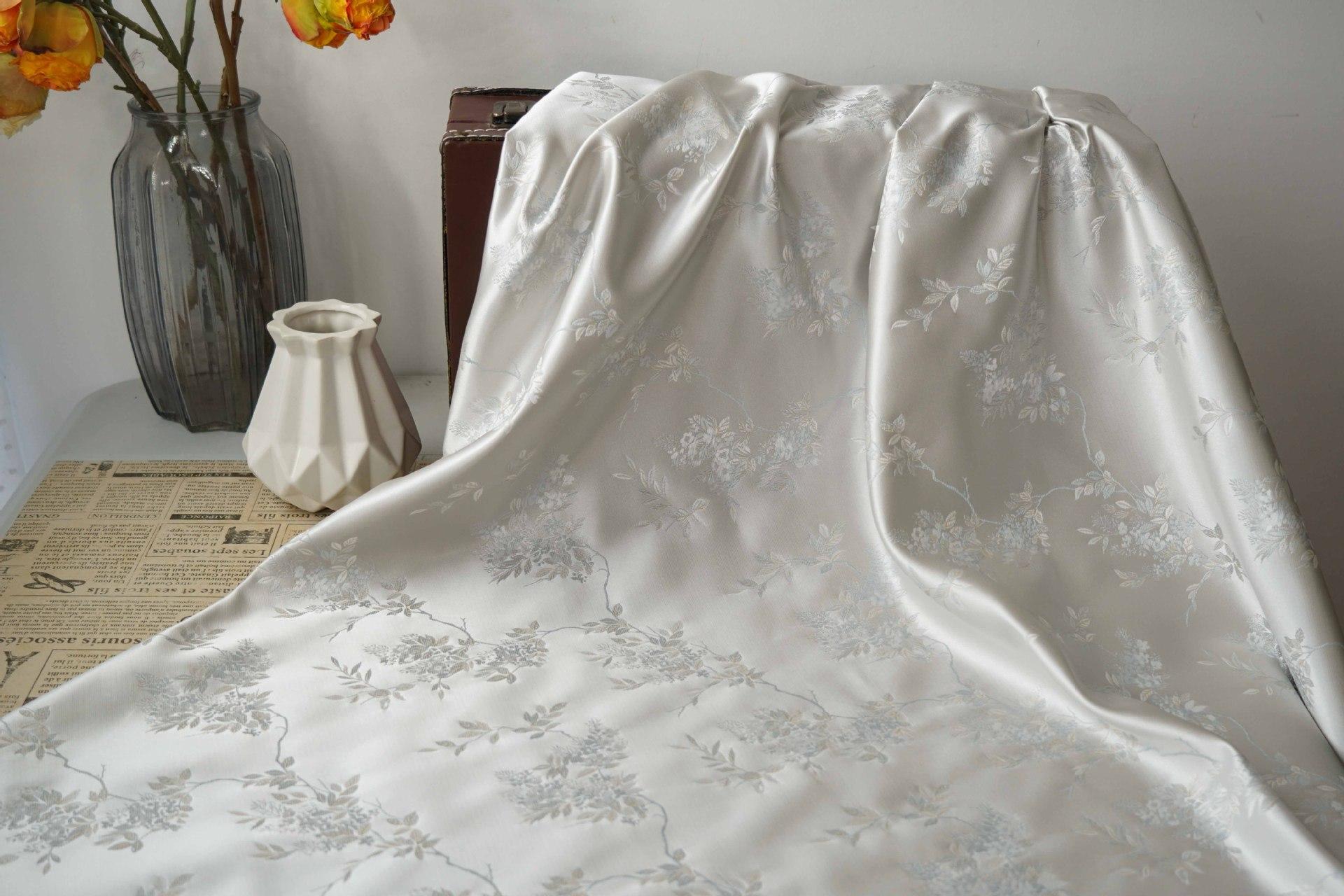 [primavera llena de ramas de flores] chaleco cheongsam liso y elegante teñido con hilo, chaqueta doble floral, tejido jacquard, tela decorativa china nueva
