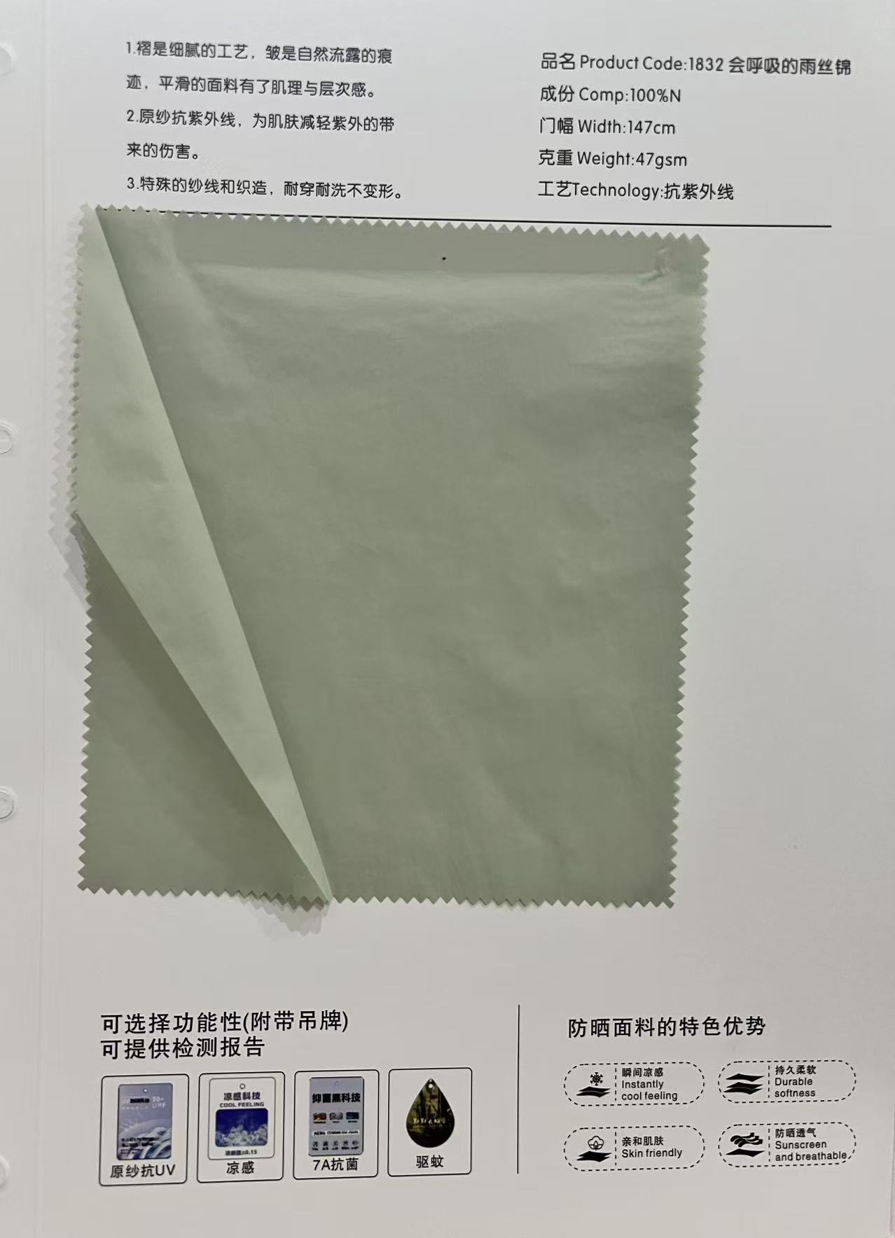 Tela de protección solar para ropa UPF50, nailon completo, suave, arrugado, ligero, hilo original, tela de protección solar anti-UV