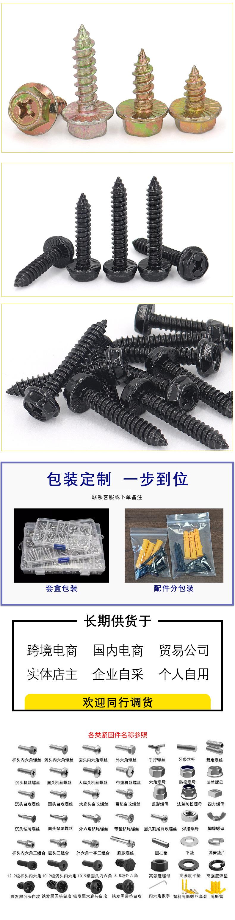 Tornillo Autorroscante de Cabeza con Brida M3 ~ M8 GBWA Hexágono Externo Ranura Cruzada Tornillo Autorroscante Dentado de Brida Tornillo Pequeño
