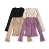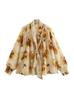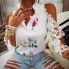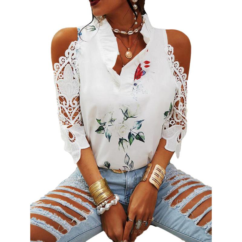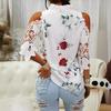 Amazon Europeo y Americano Nuevo Top de Mujer Estampado de Flores Hombro Encaje Puntadas Manga Larga Camiseta para Mujer