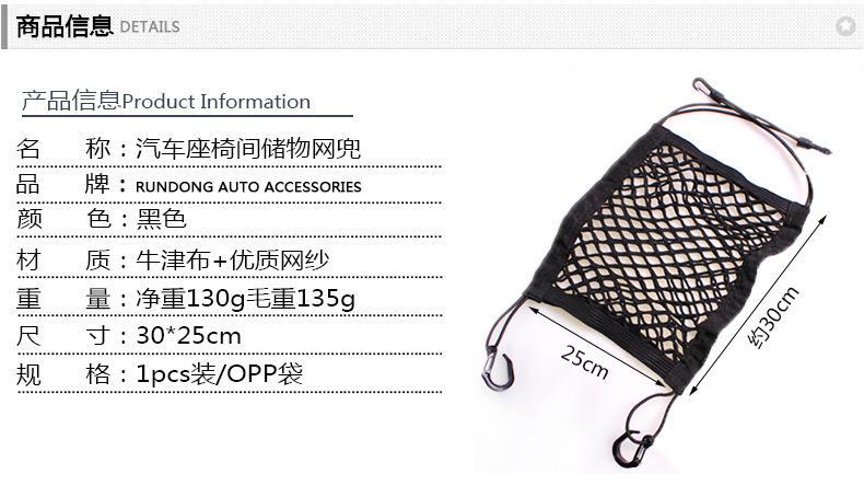 5.Bolsillo de red de almacenamiento especial entre los asientos, diseño de doble capa, expande el espacio en el automóvil con una fuerte fuerza de tracción.