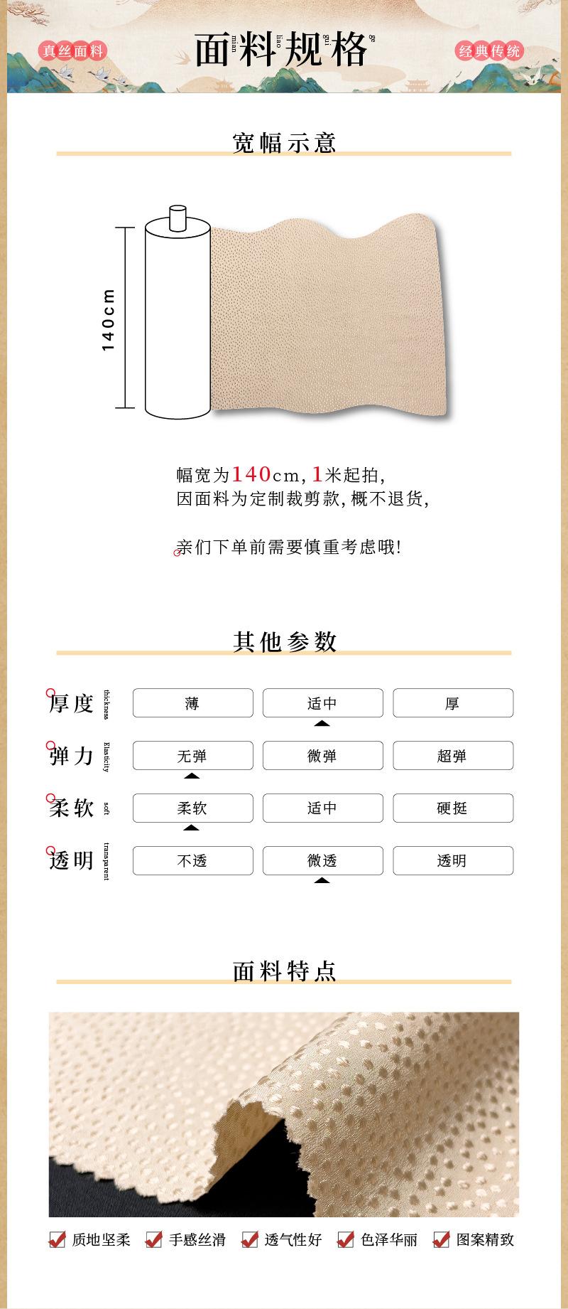 Tela cheongsam de seda morera de 16 mm de ancho y 140 g, punto de inflamación 100 % (FD6027)