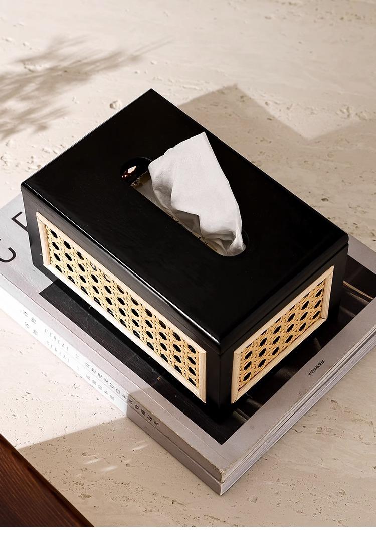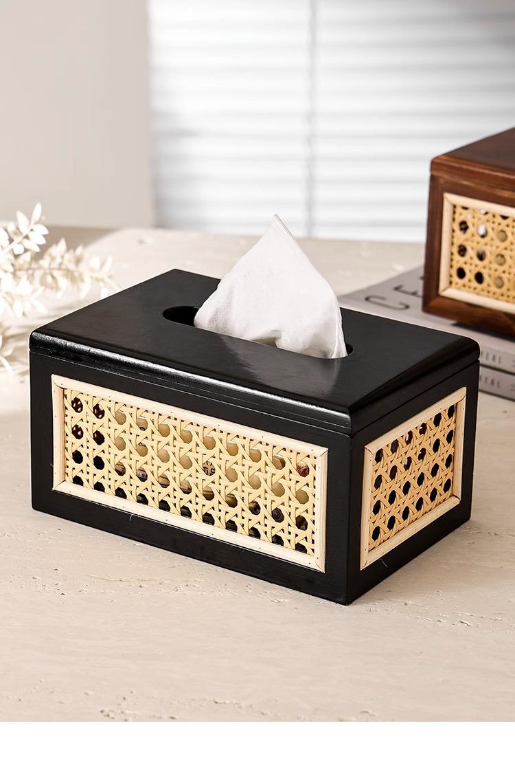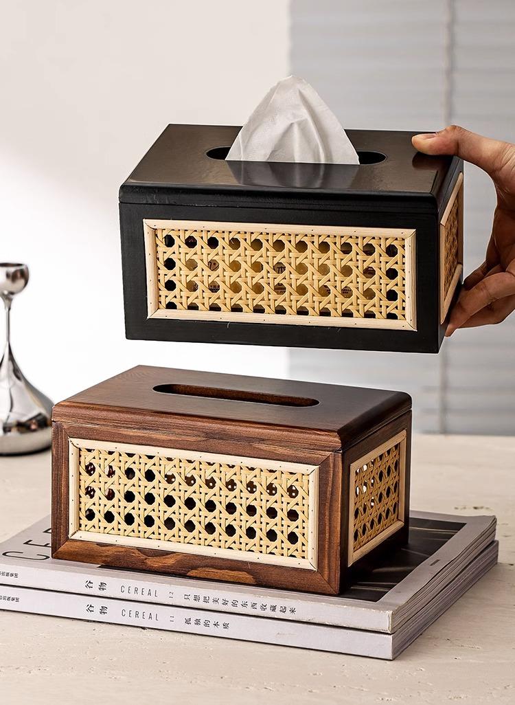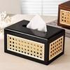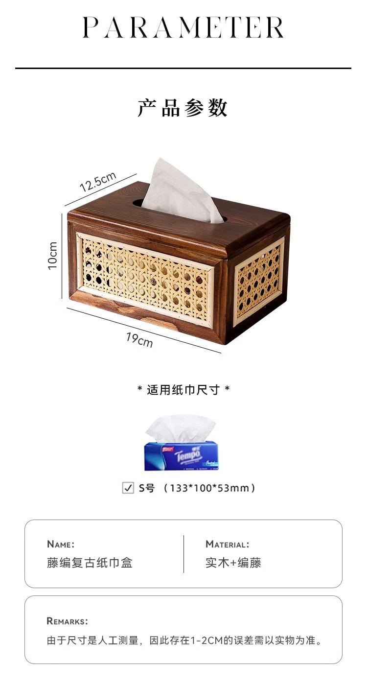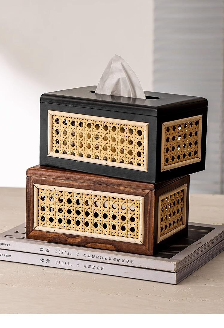 Lva Caja de Pañuelos de Ratán de Madera Maciza Estilo Japonés Hogar Retro Caja de Papel Hogar Sala de Estar Comedor Mesa de Centro Pañuelos