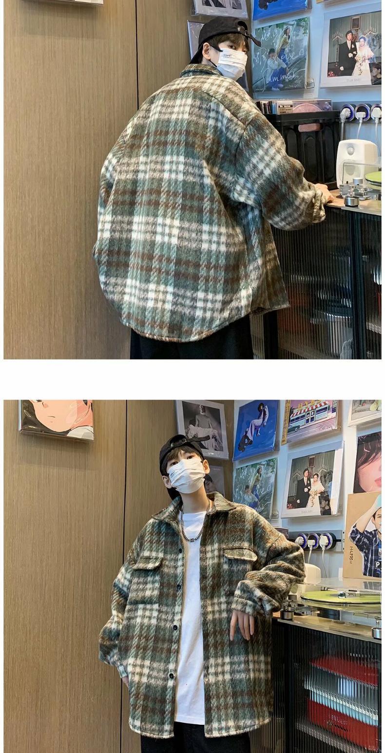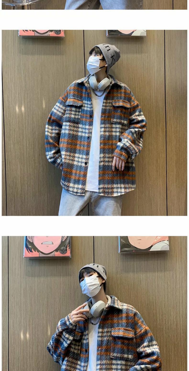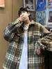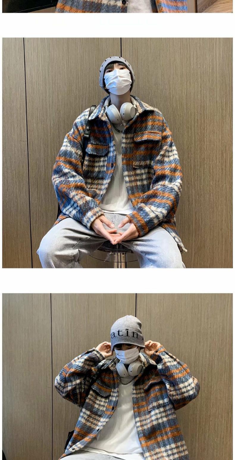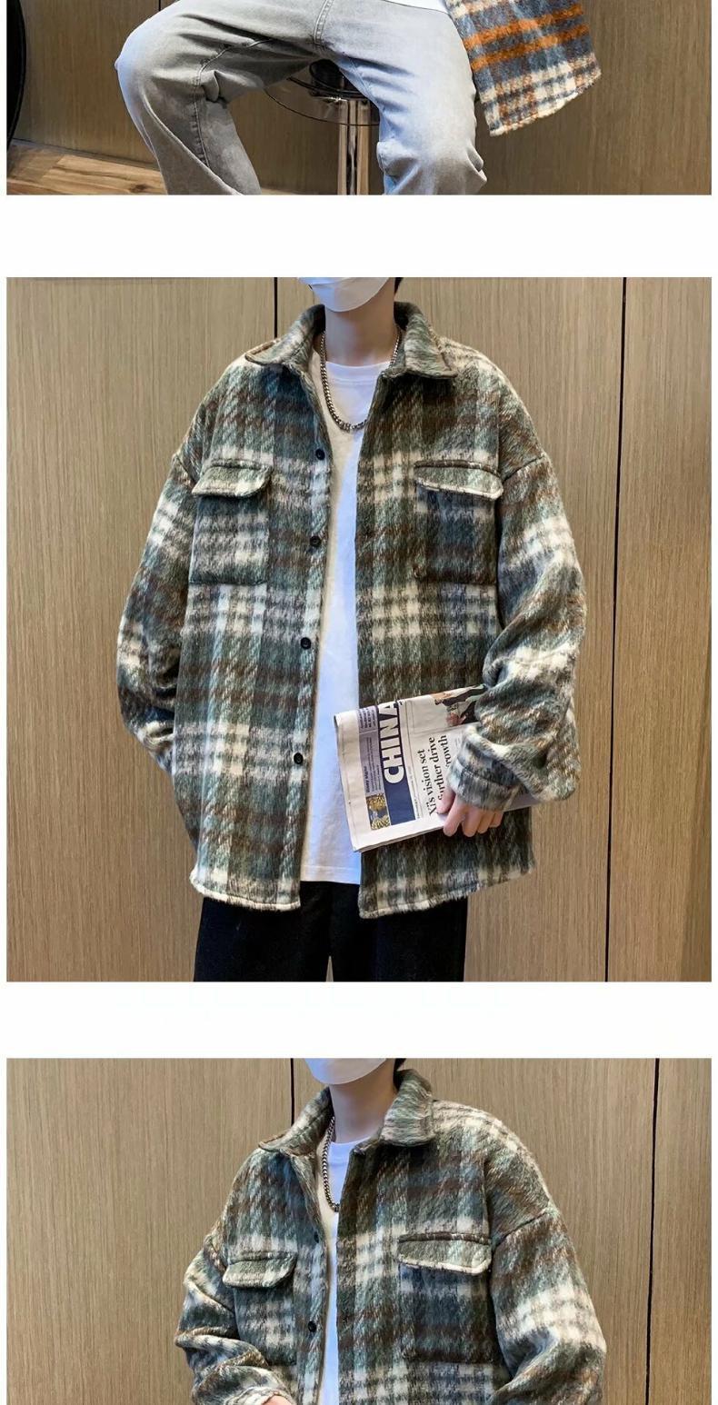 Abrigo de Lana a Cuadros para Hombre Otoño e Invierno Estilo Coreano Pequeña Fragancia Chaqueta de Lana Relajada Moderna Marca Guapo Chaqueta con Solapa