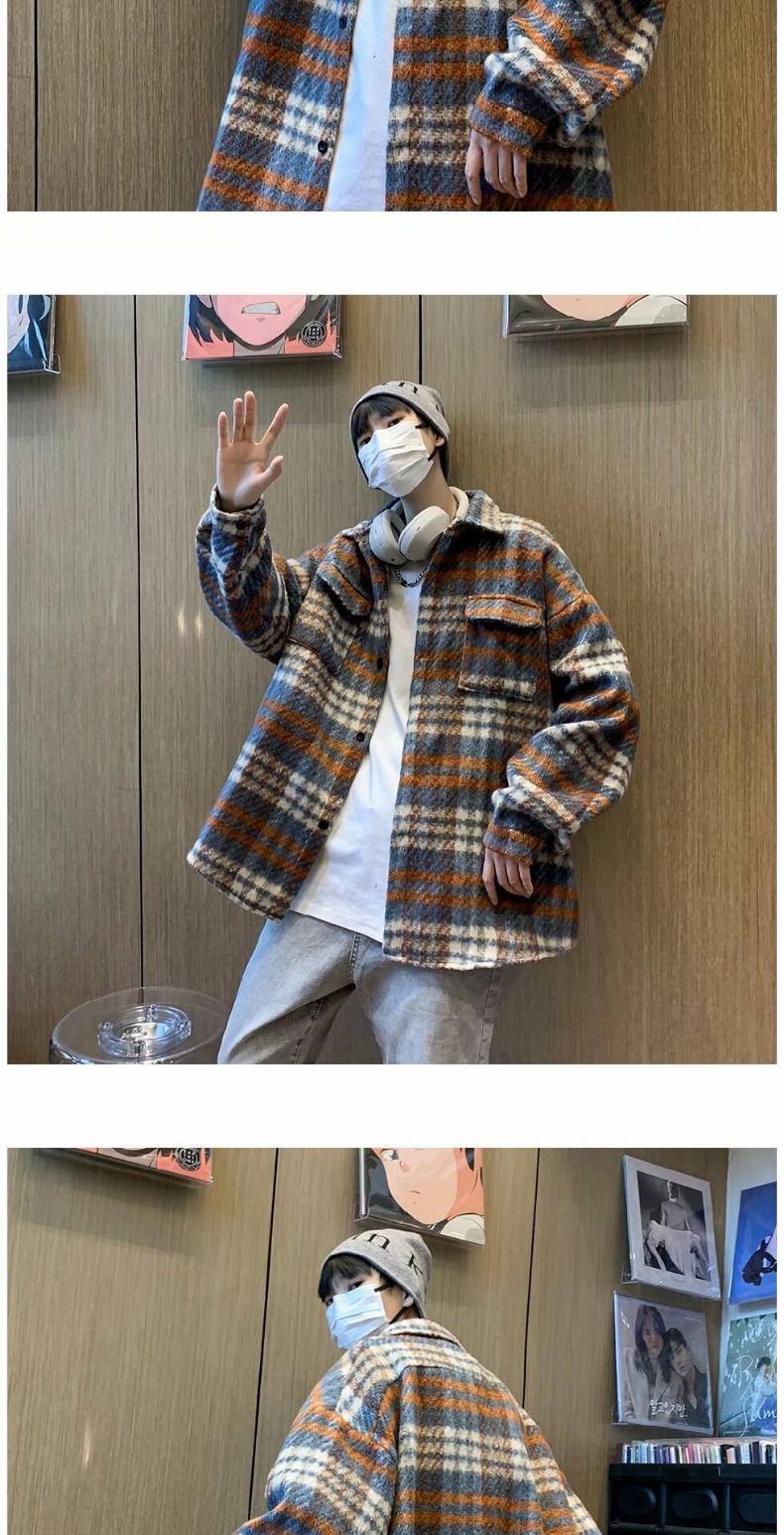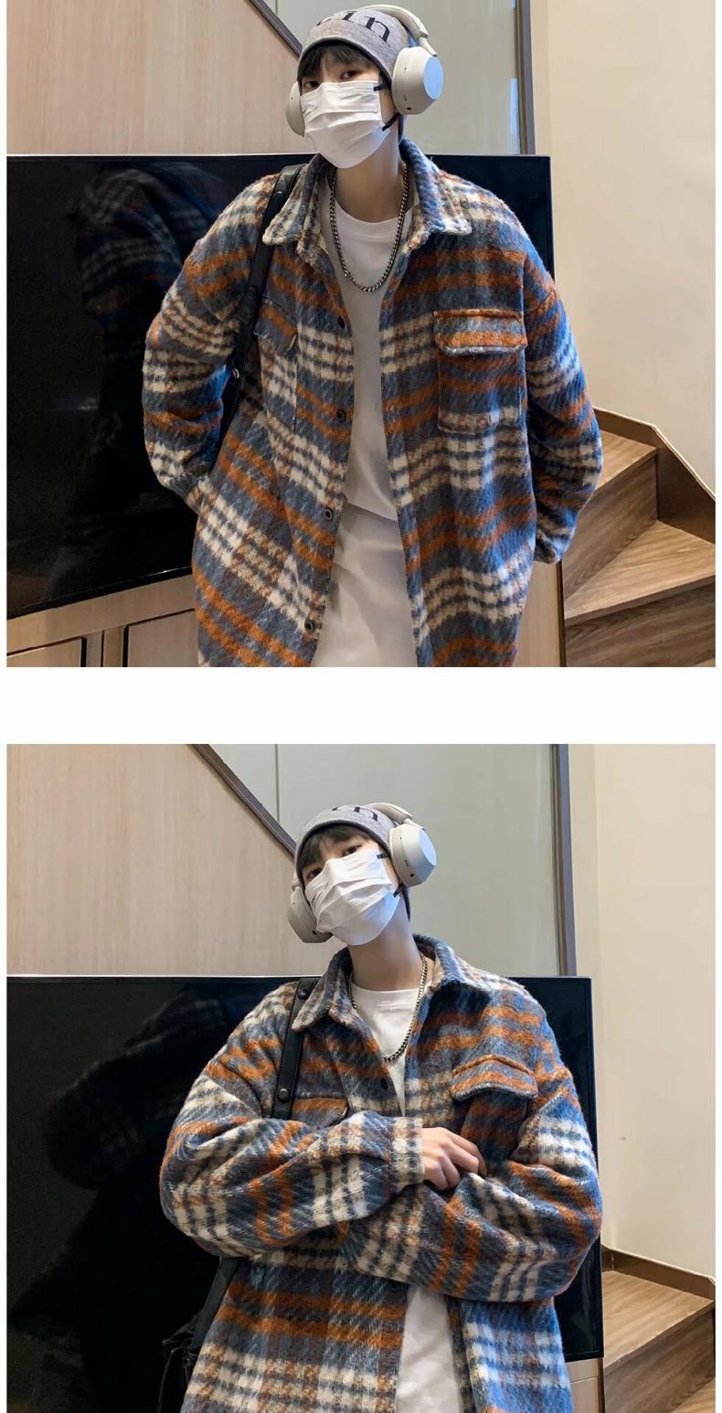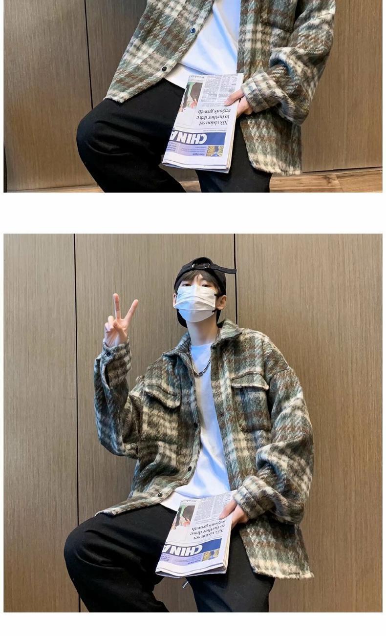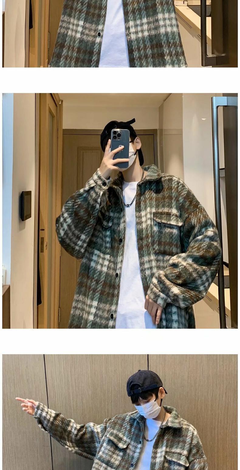 Abrigo de Lana a Cuadros para Hombre Otoño e Invierno Estilo Coreano Pequeña Fragancia Chaqueta de Lana Relajada Moderna Marca Guapo Chaqueta con Solapa