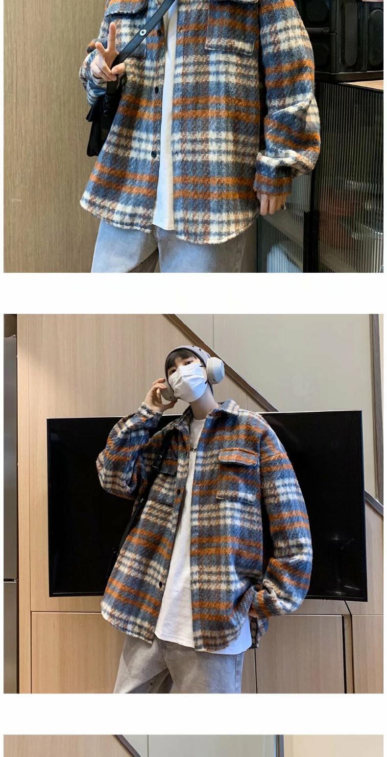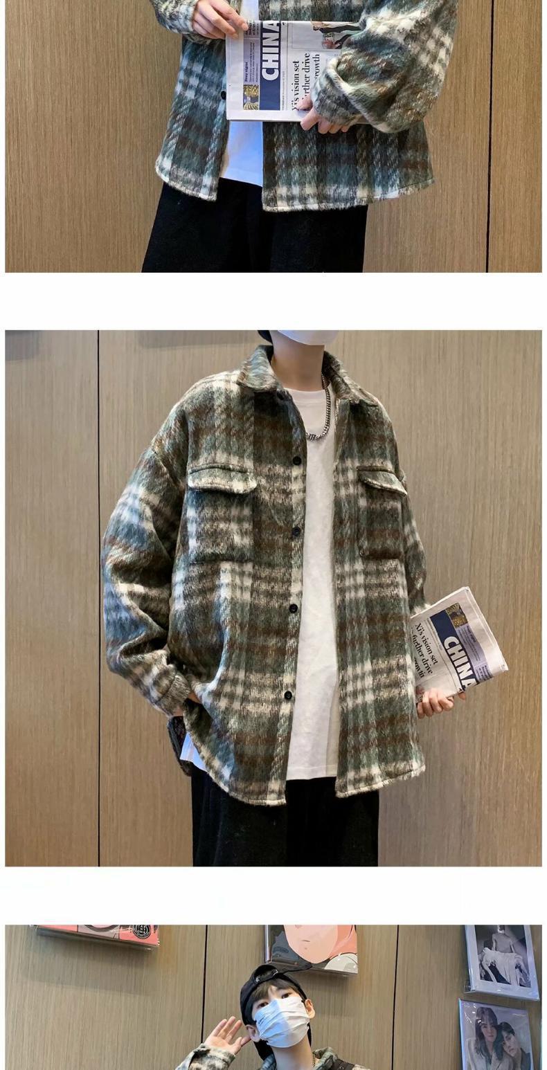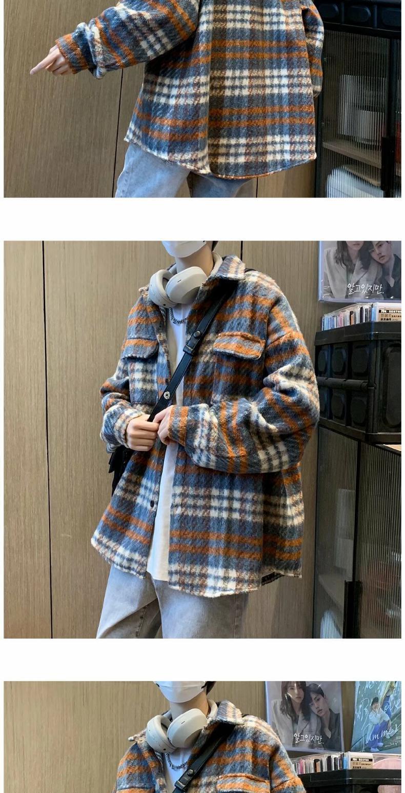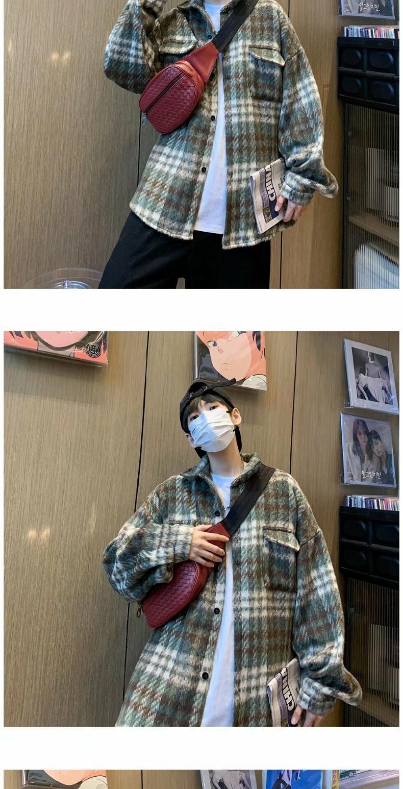 Abrigo de Lana a Cuadros para Hombre Otoño e Invierno Estilo Coreano Pequeña Fragancia Chaqueta de Lana Relajada Moderna Marca Guapo Chaqueta con Solapa