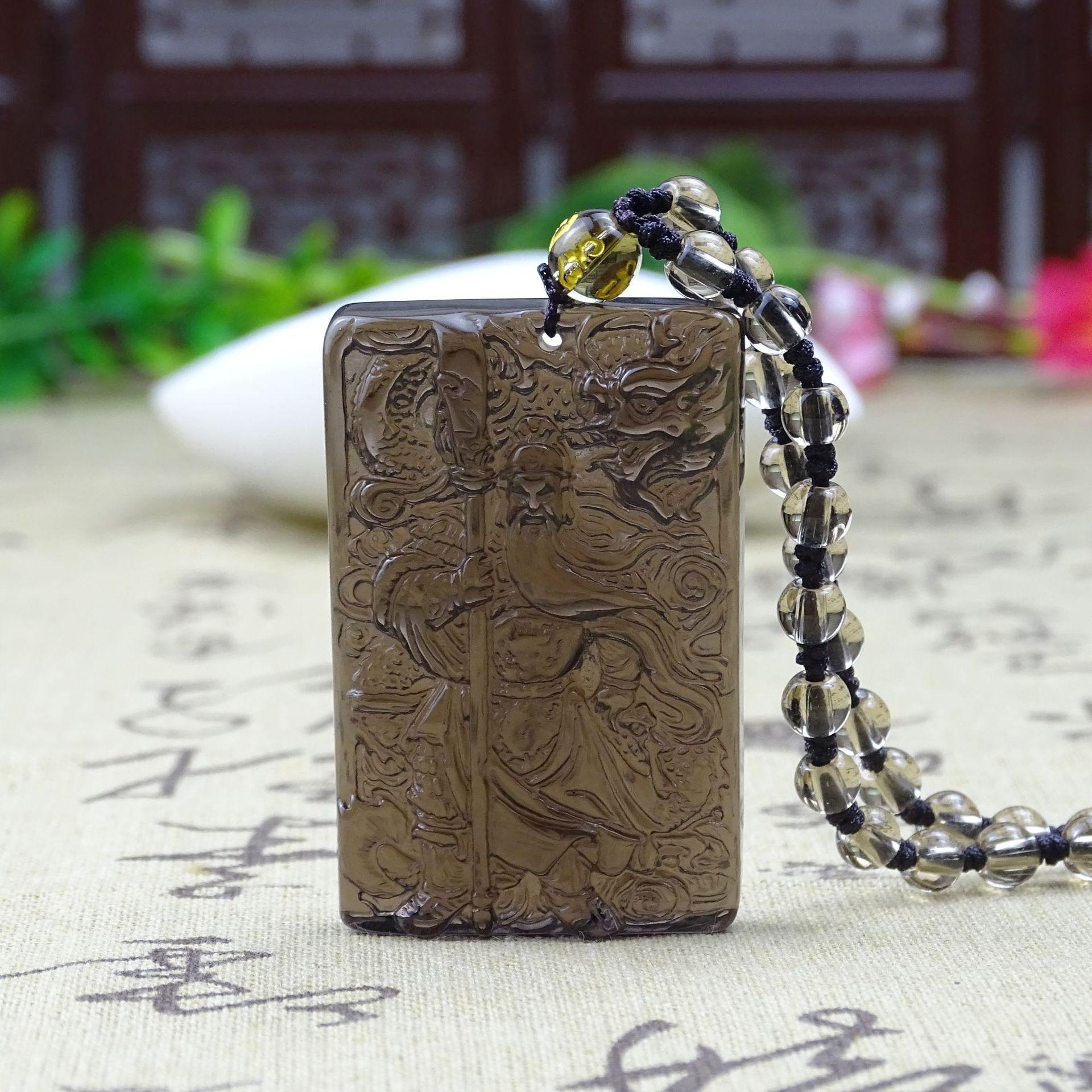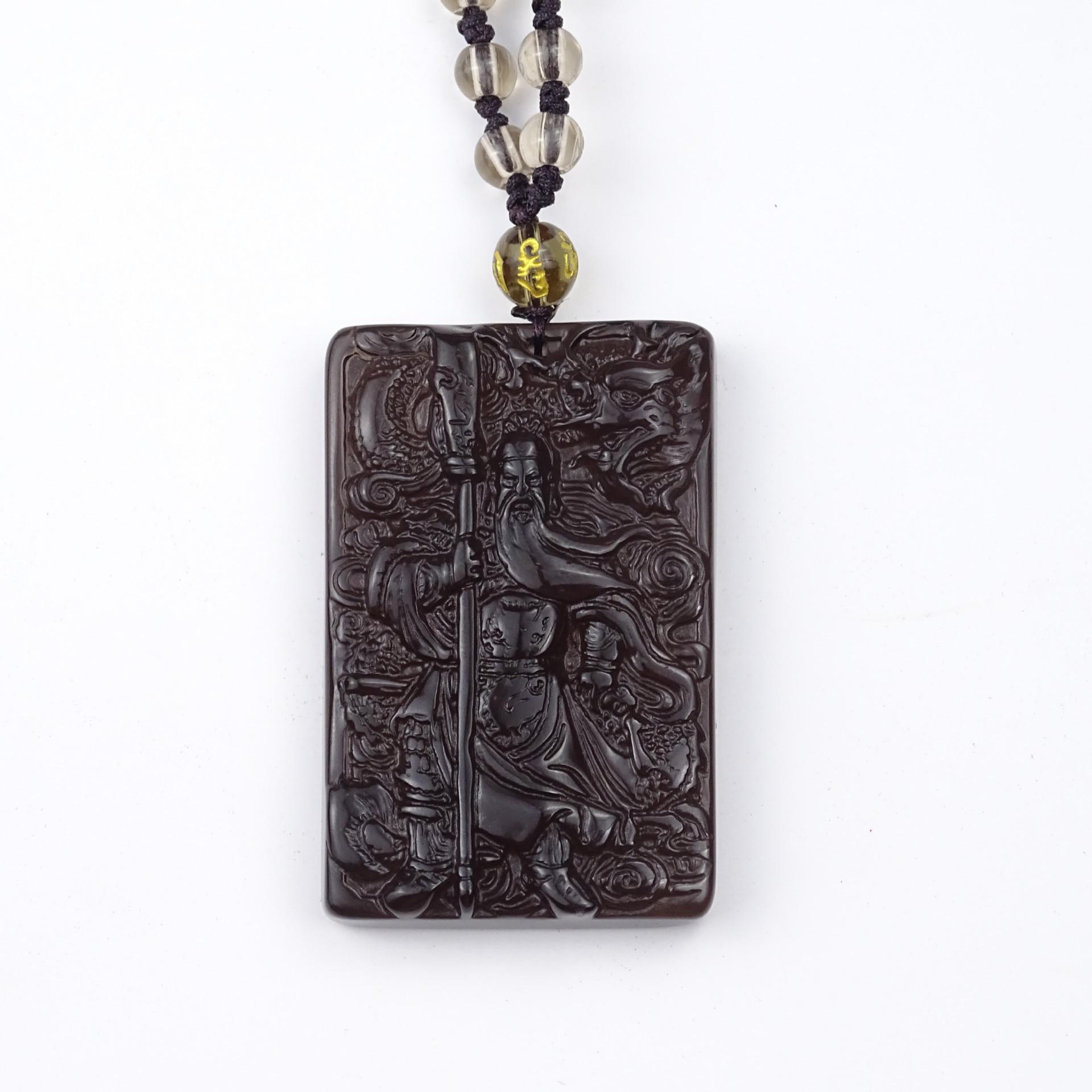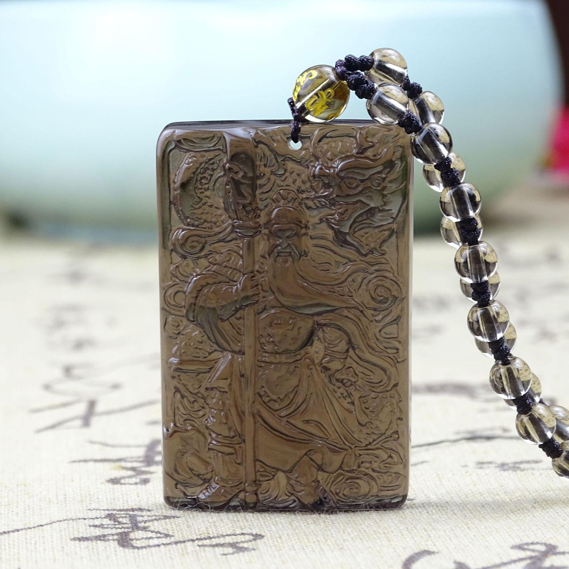 Colgante de obsidiana natural Guan Gong para hombre, colgante de Guan Yu Guan Erye Wu, dios de la riqueza, collar amuleto para hombre