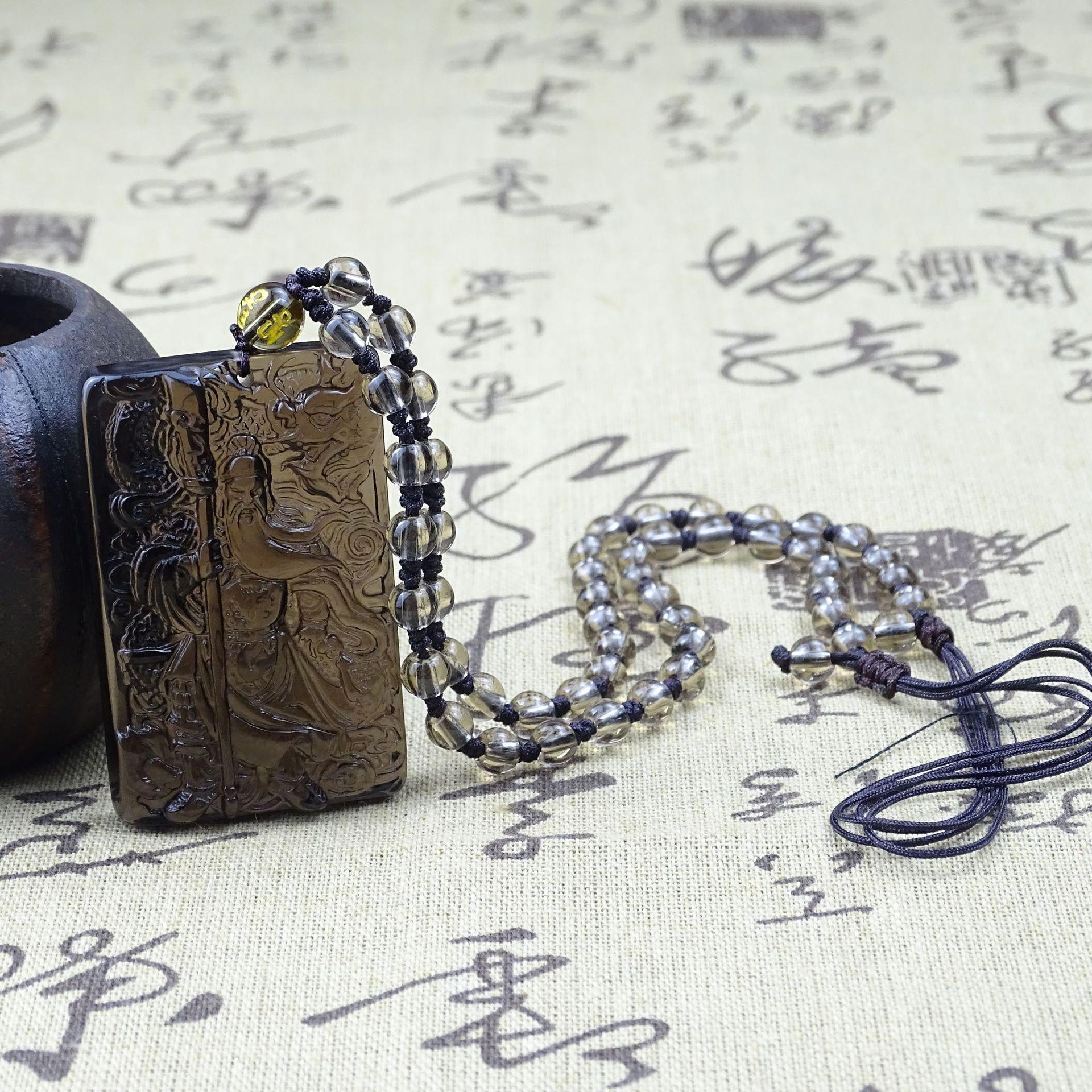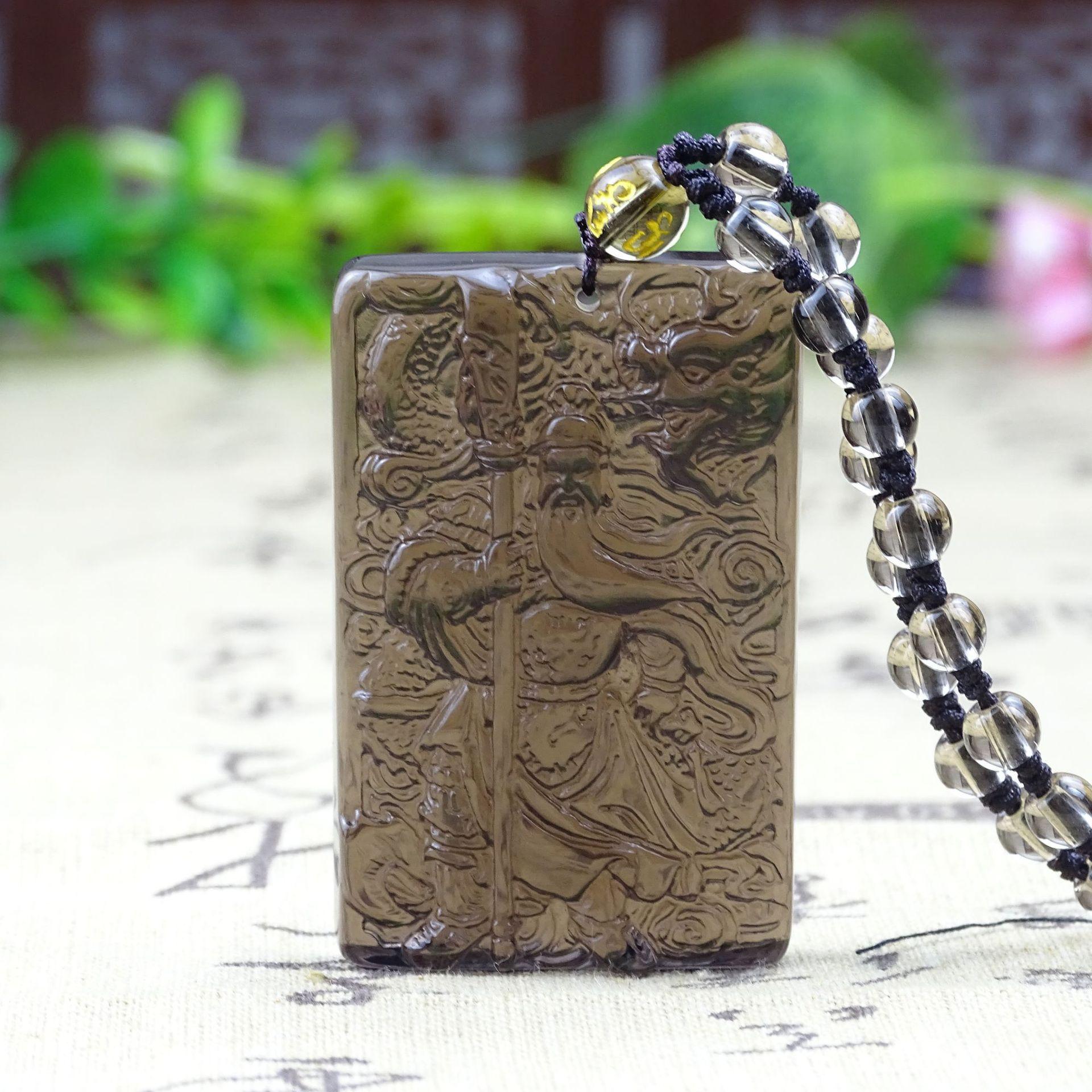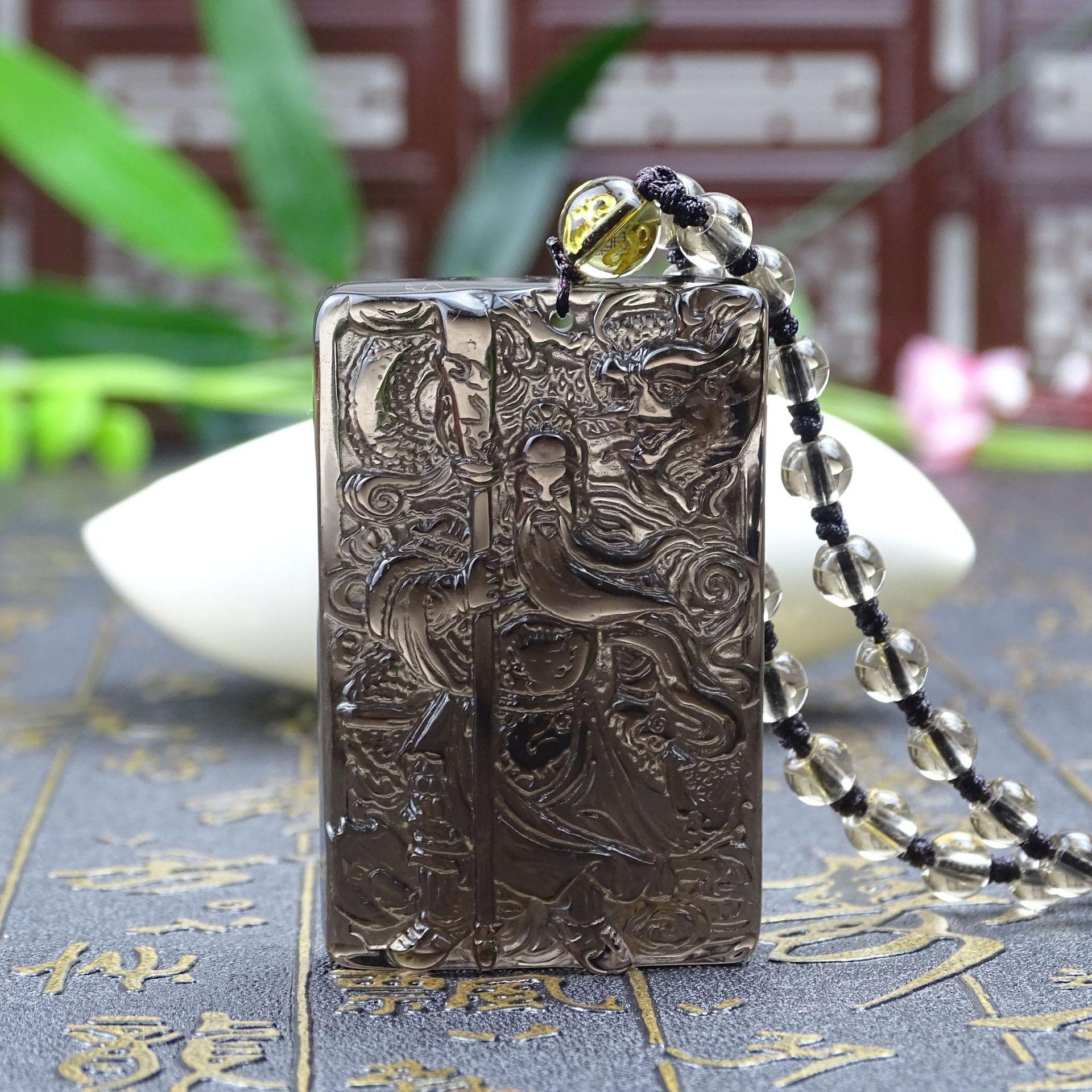 Colgante de obsidiana natural Guan Gong para hombre, colgante de Guan Yu Guan Erye Wu, dios de la riqueza, collar amuleto para hombre