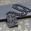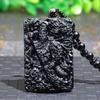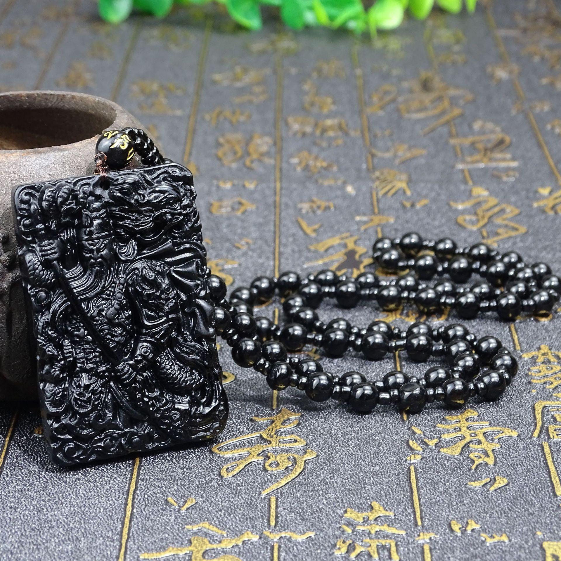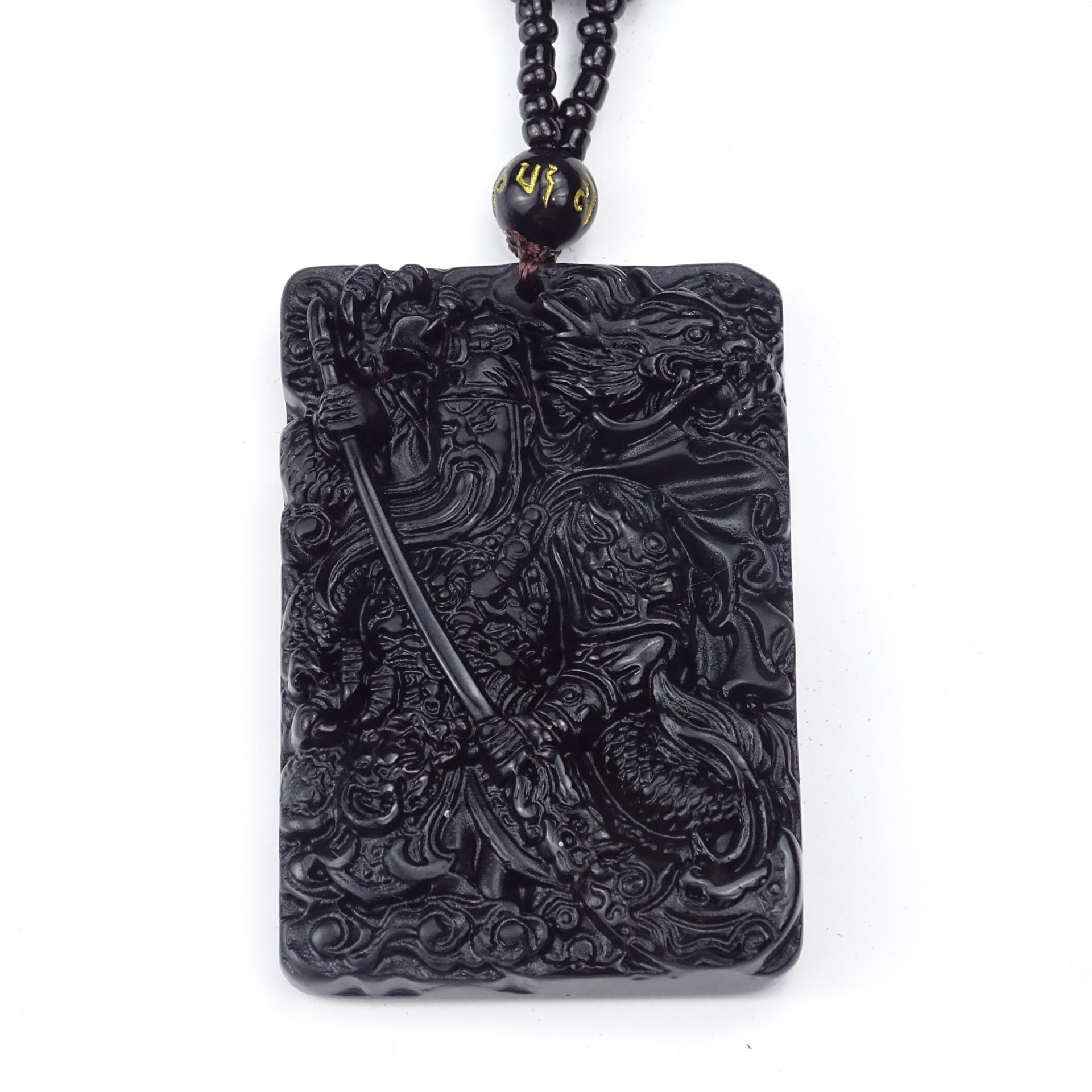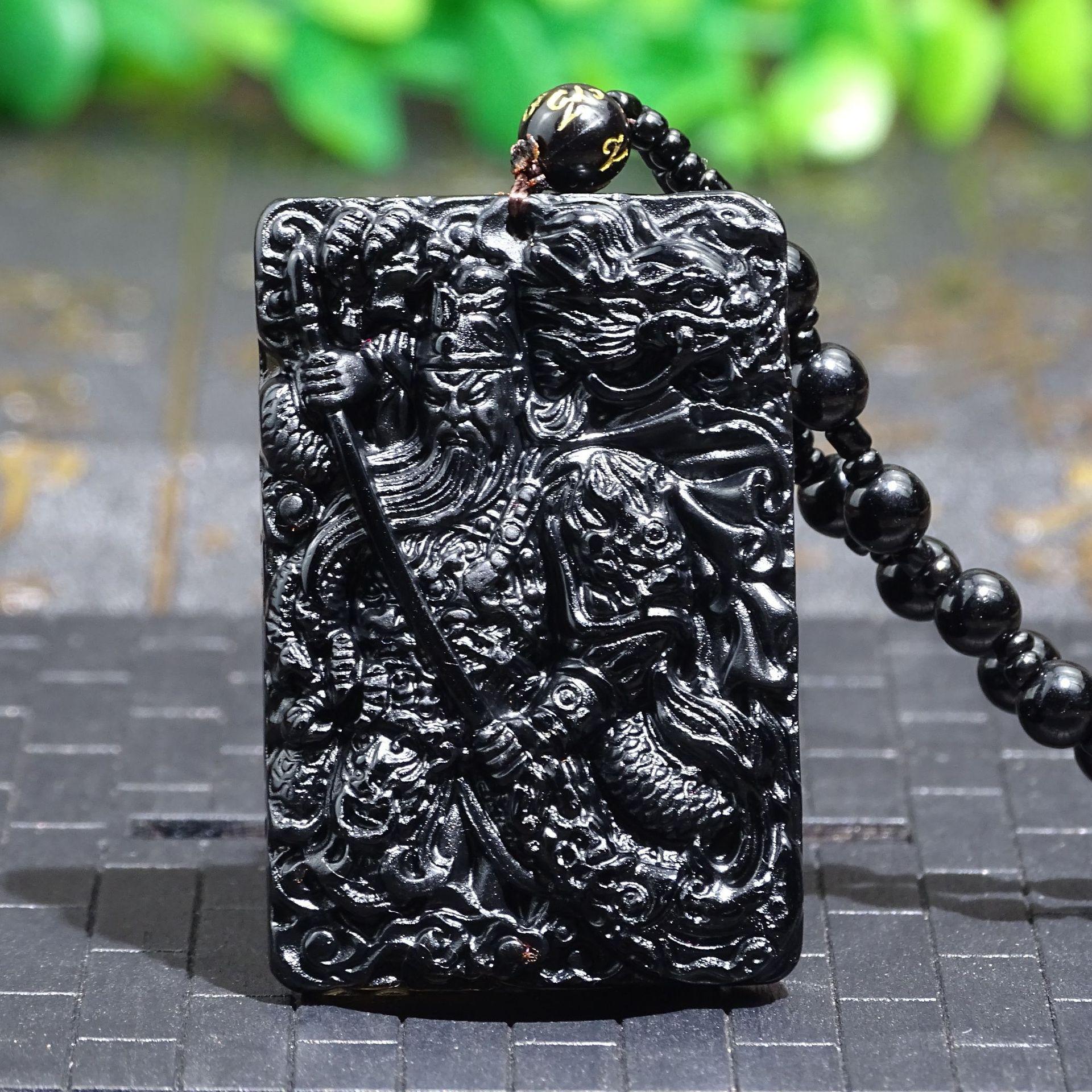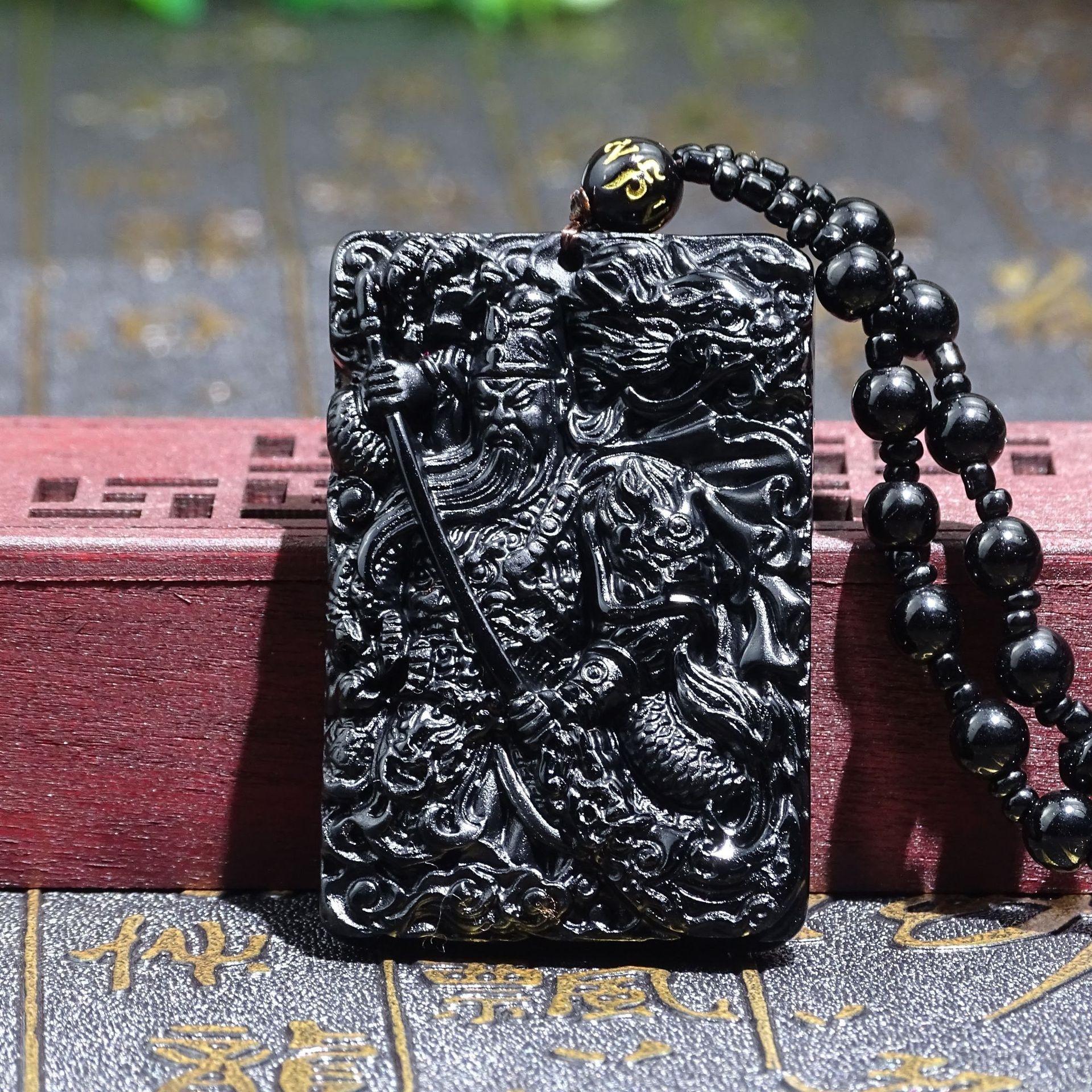 Colgante Guan Gong tallado en obsidiana natural para hombres y mujeres, colgante Wu Caishen dominante, obsidiana Guan Gong al por mayor