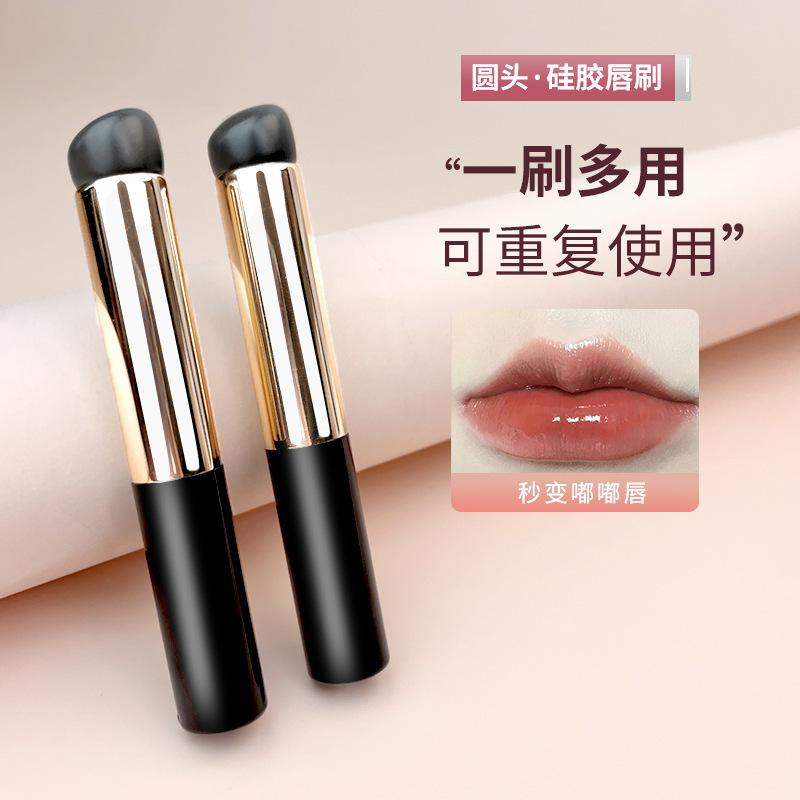 Pincel de labios de silicona con cabezal redondo portátil Q Soft Lip mejorado, pincel de viaje para corrector, lápiz labial y maquillaje.