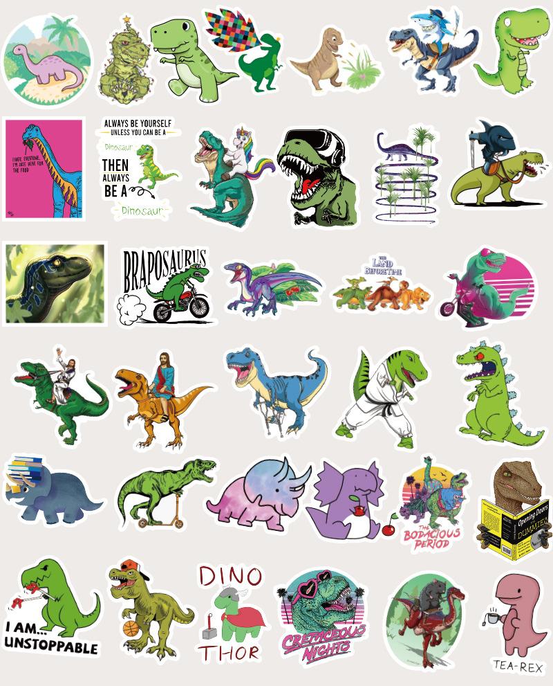 100 lindas pegatinas de grafiti extraíbles impermeables con forma de dinosaurio de dibujos animados, caja de papelería, taza de agua, cuaderno, decoración DIY