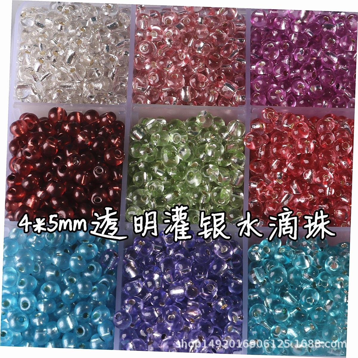 Excelentes cuentas de arroz de vidrio transparente de 5x4 mm con forma de gota de agua plateada, hechas a mano, para pulseras de cuentas sueltas, material de joyería con cuentas.