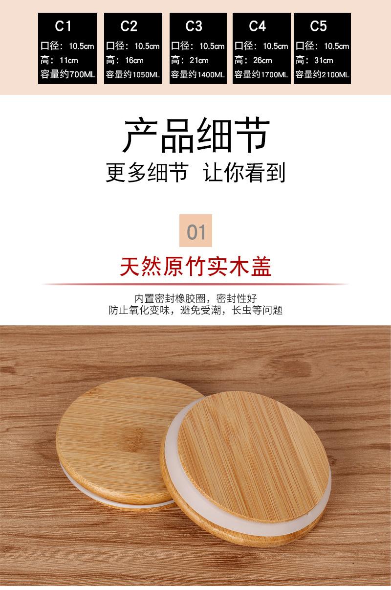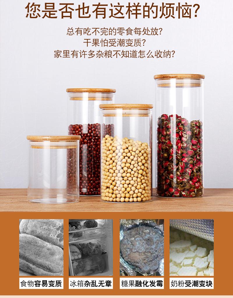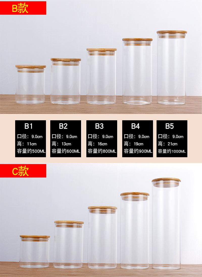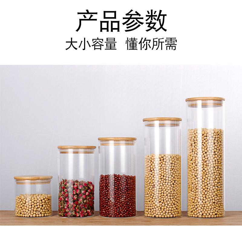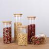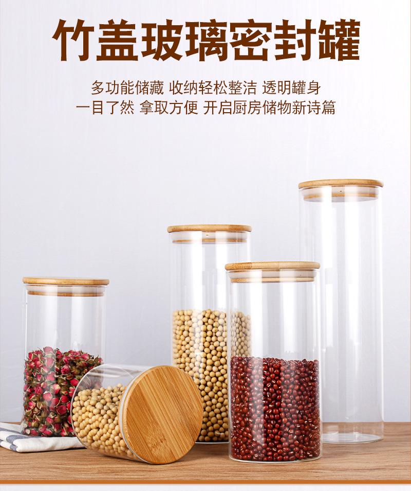 Frasco de vidrio sellado con tapa de bambú transparente, recipiente para té, caja de almacenamiento de alimentos para la cocina del hogar, frasco de almacenamiento