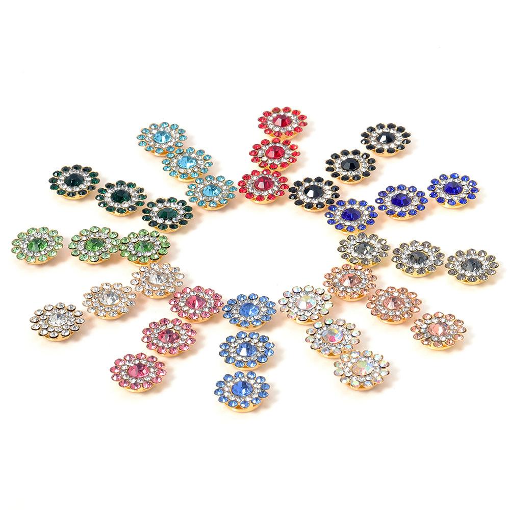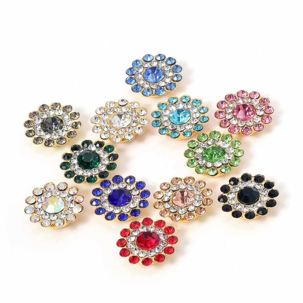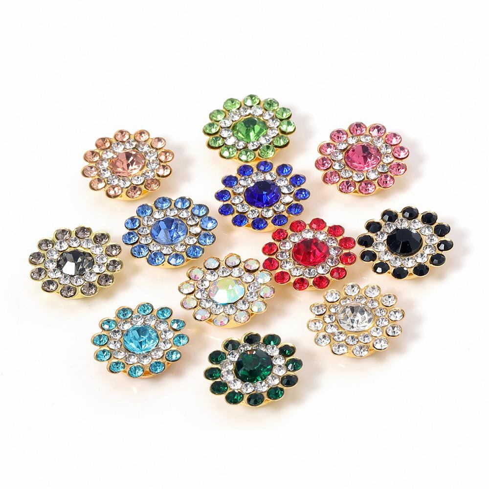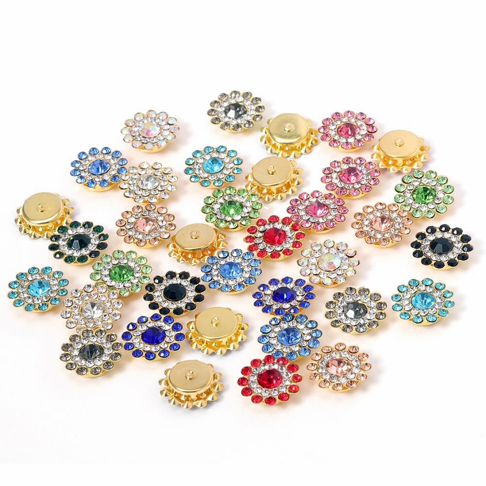 Hebilla de Diamantes Girasol de 14 mm, placa redonda de flor, lazo con diamantes, accesorios de joyería DIY hechos a mano, flor de tres capas con diamantes de imitación al por mayor