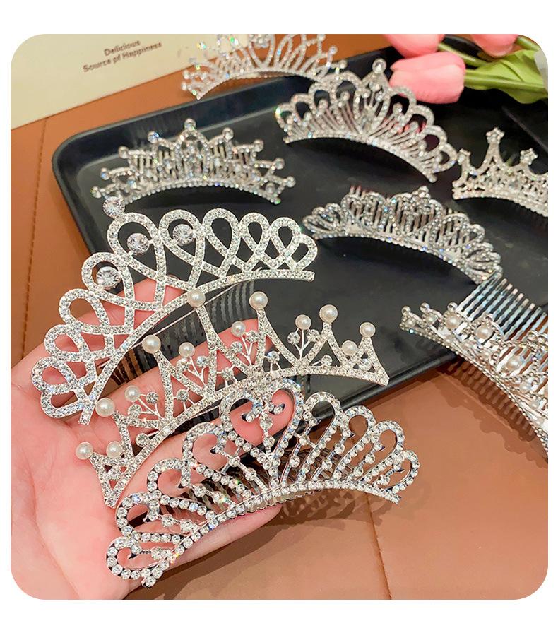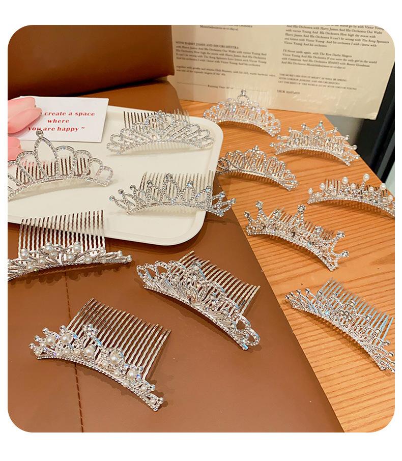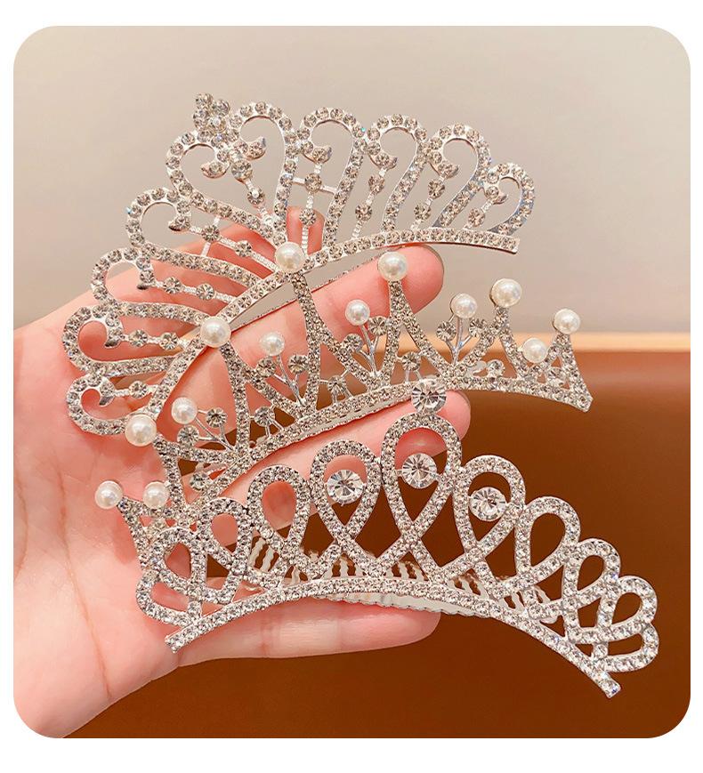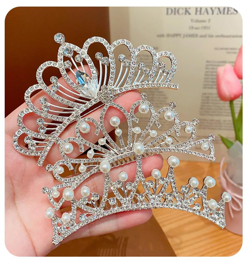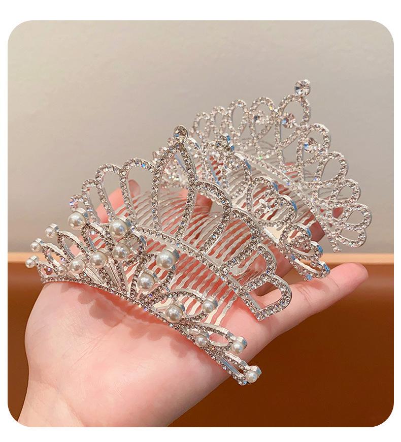 Tocado de corona de princesa, peine para niña, horquilla con perlas y diamantes de imitación para niña, joyería de cumpleaños, horquilla con corona, accesorios para el cabello