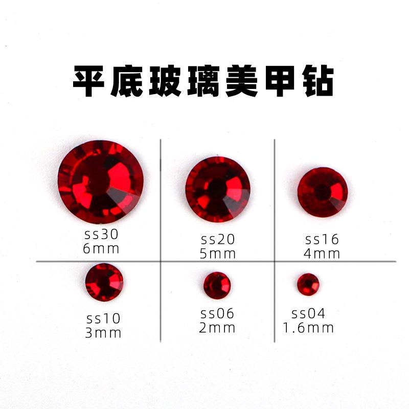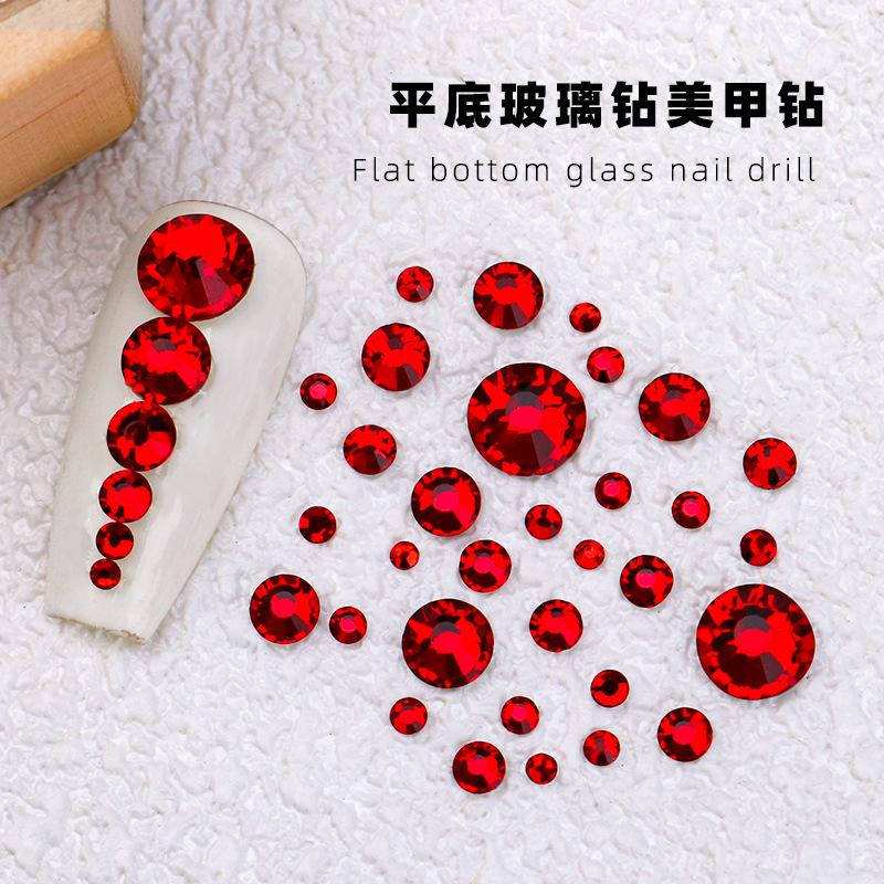Broca de vidrio rojo transfronteriza, broca para uñas planas, broca redonda grande y pequeña, accesorios de joyería hechos a mano para bricolaje al por mayor