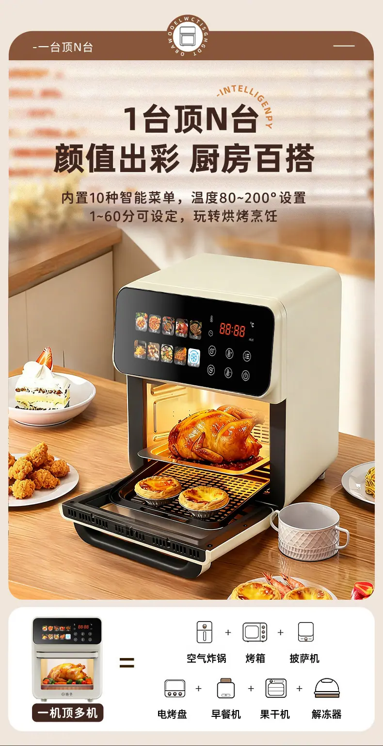 Freidora de Aire Modelo Nuevo 2025 para Uso Doméstico, Horno Freidor Multifuncional, Freidora Eléctrica de Gran Capacidad, Horno de Aire