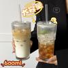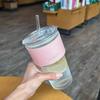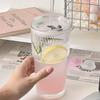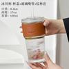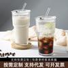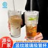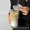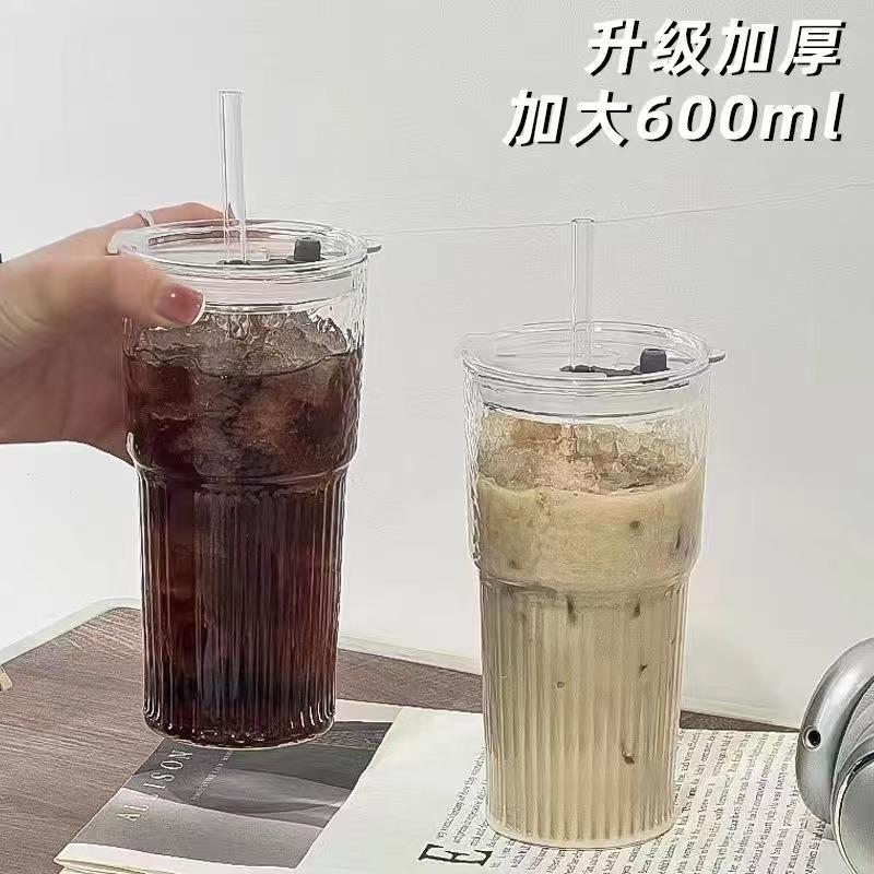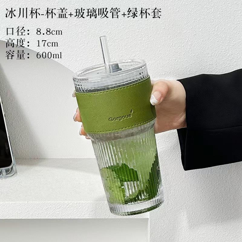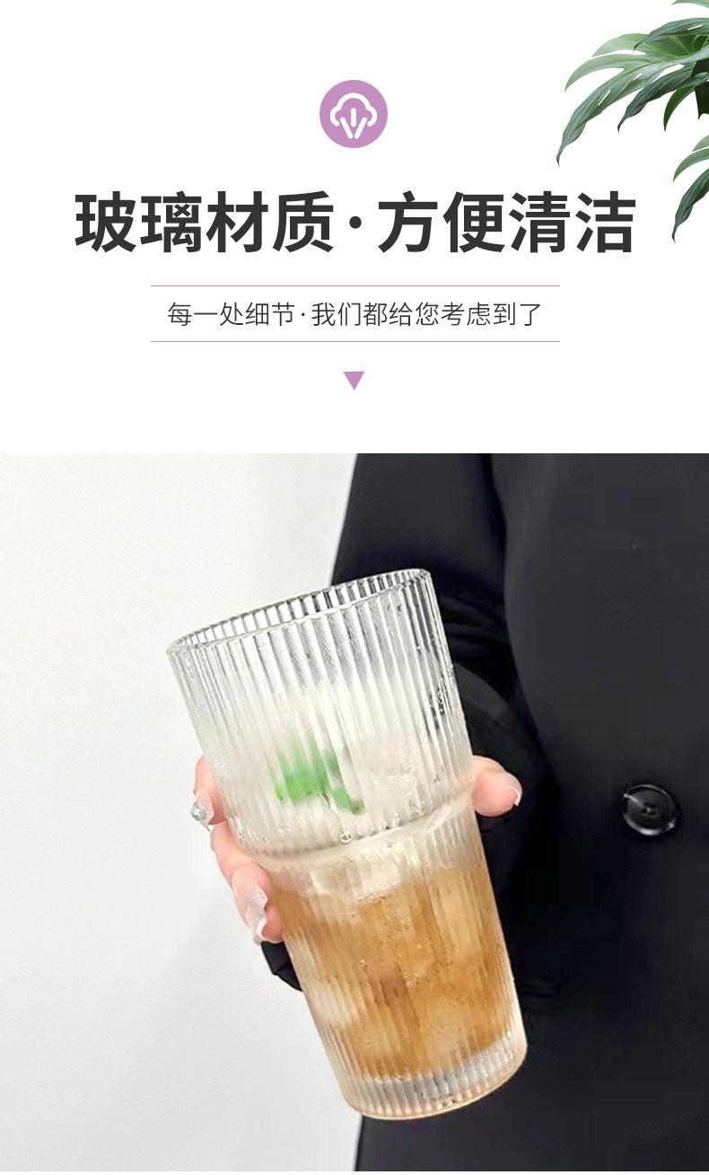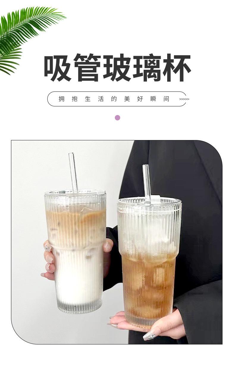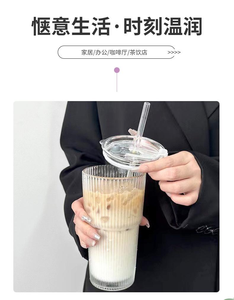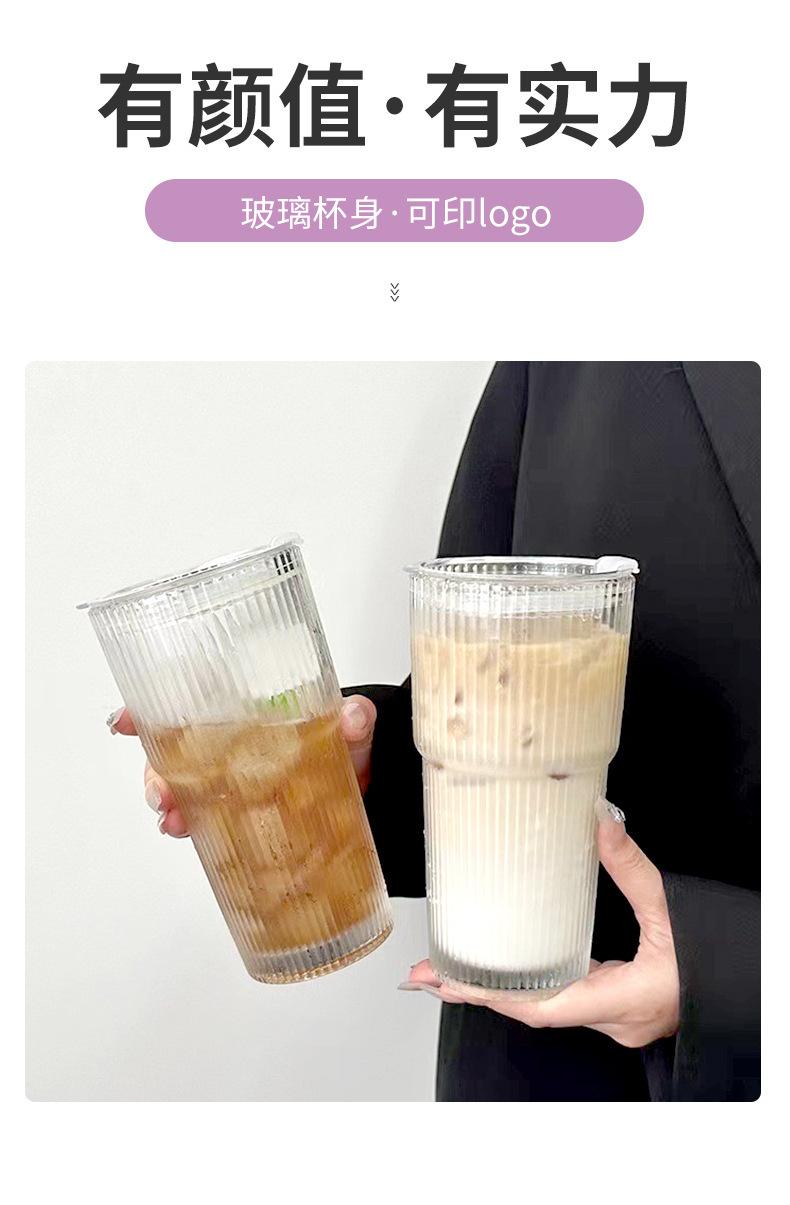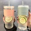 Vaso Creativo Ins-Style de Rayas Verticales de Gran Capacidad Sellado con Pajita y Tapa para Bebidas Frías, Jugo y Bebidas, Vaso de Vidrio