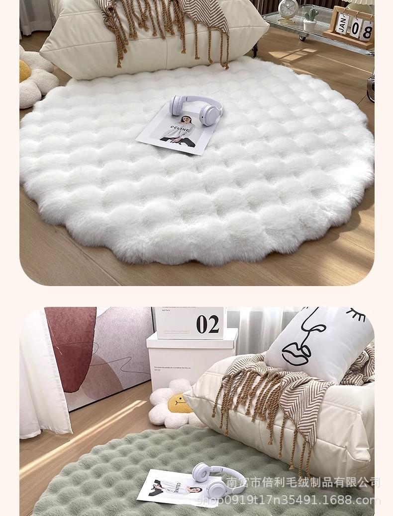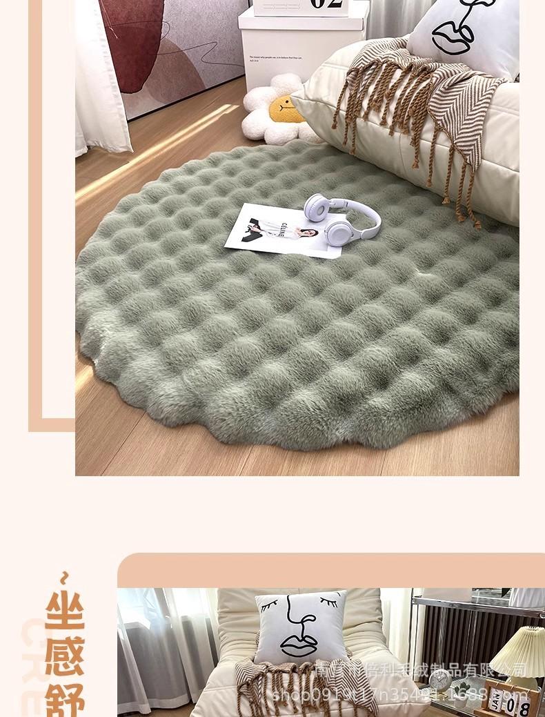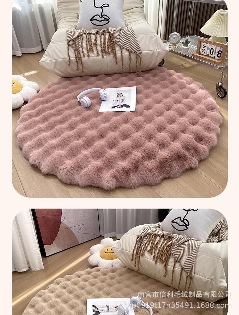 Alfombra Redonda de Felpa Imitación Conejo de Color Sólido para Sala de Estar, Tapete para Piso, Manta para Dormitorio, Alfombra de Terciopelo Burbuja para Ventana de Bahía, Manta para Sofá