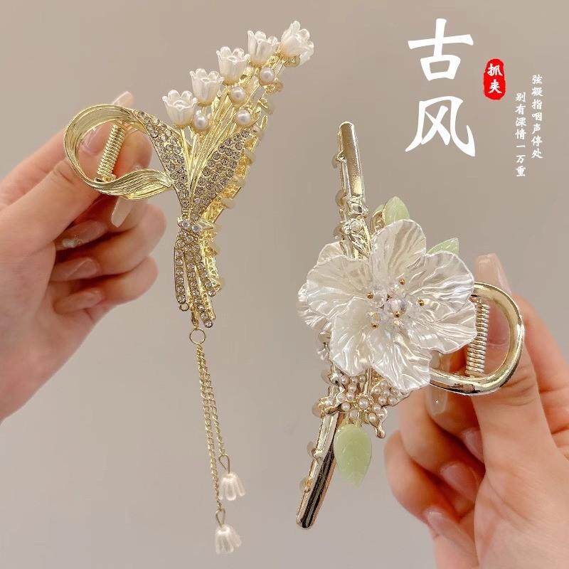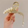 Pinza para el cabello con borla de metal de camelia Accesorios Hanfu Elegante pinza para la parte posterior de la cabeza para mujer Pinza para el cabello grande de gran tamaño