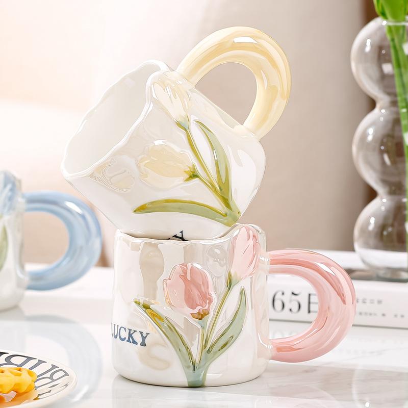 Taza creativa de tulipán con diseño de nicho de alta apariencia, taza de cerámica para niña, taza para beber café