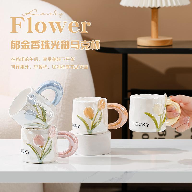 Compra Taza creativa de tulipán con diseño de nicho de alta apariencia, taza de cerámica para niña, taza para beber café al por mayor en Joom.pro