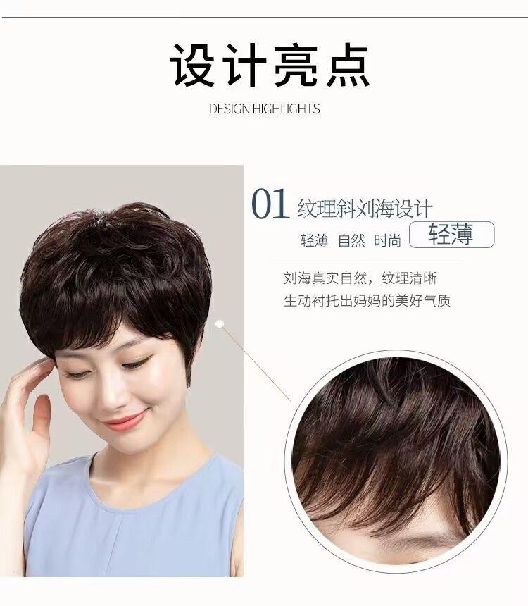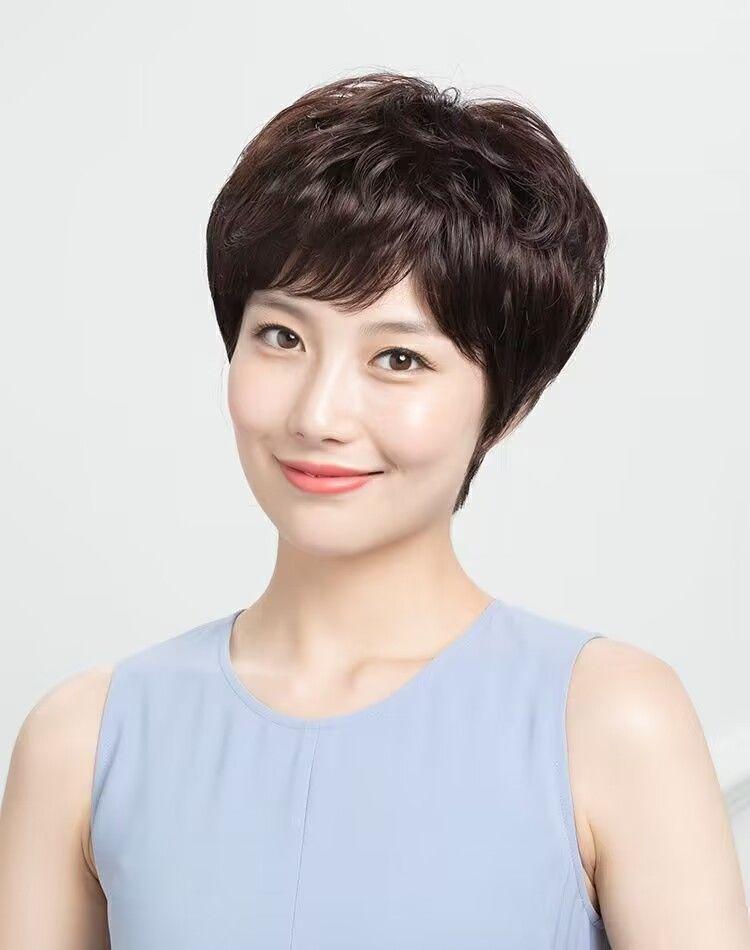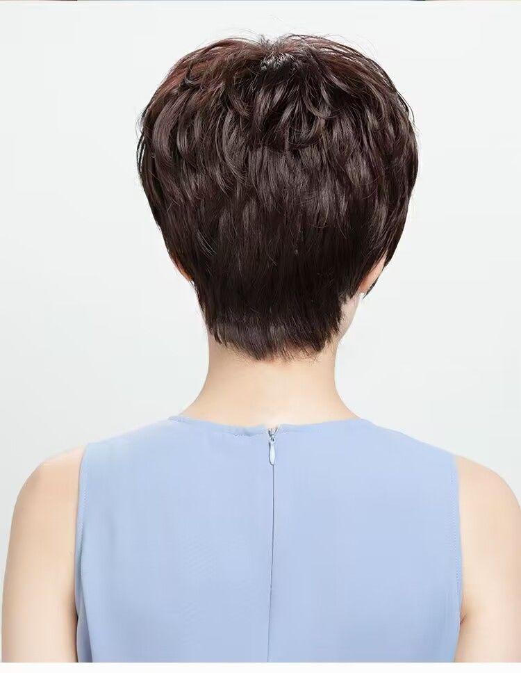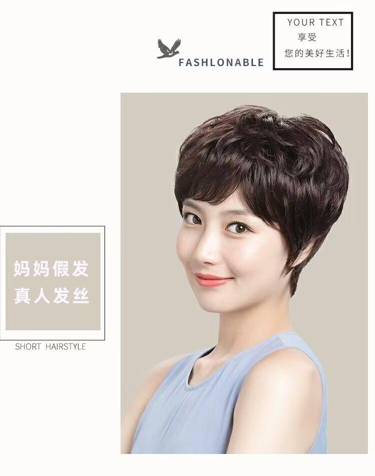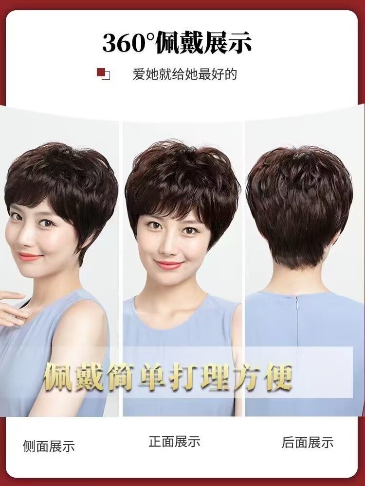 Peluca Xuchang para mujer, cabeza completa, cabello humano real, natural, esponjoso, corto, rizado, parte superior completa, peluca para madre, cubierta para la cabeza, en stock