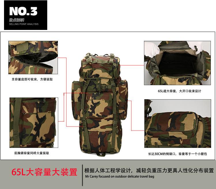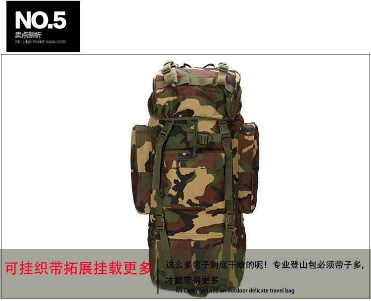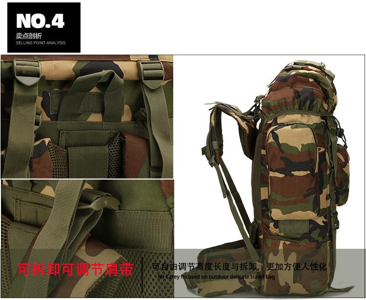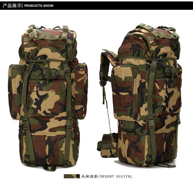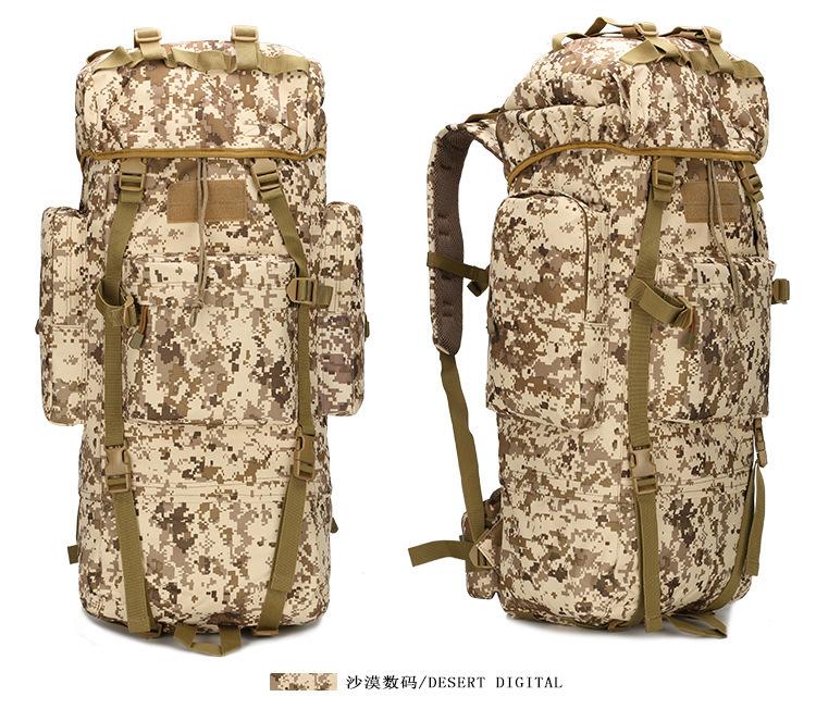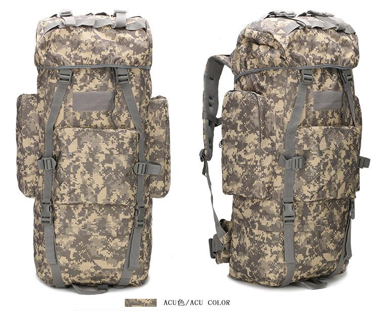 Mochila de montañismo transfronteriza para exteriores, senderismo, montañismo, mochila táctica de gran capacidad de 65 l, mochila militar de camuflaje.