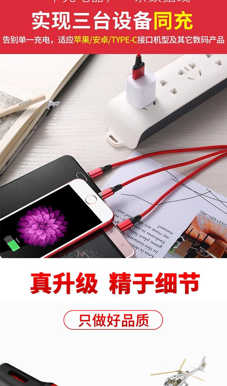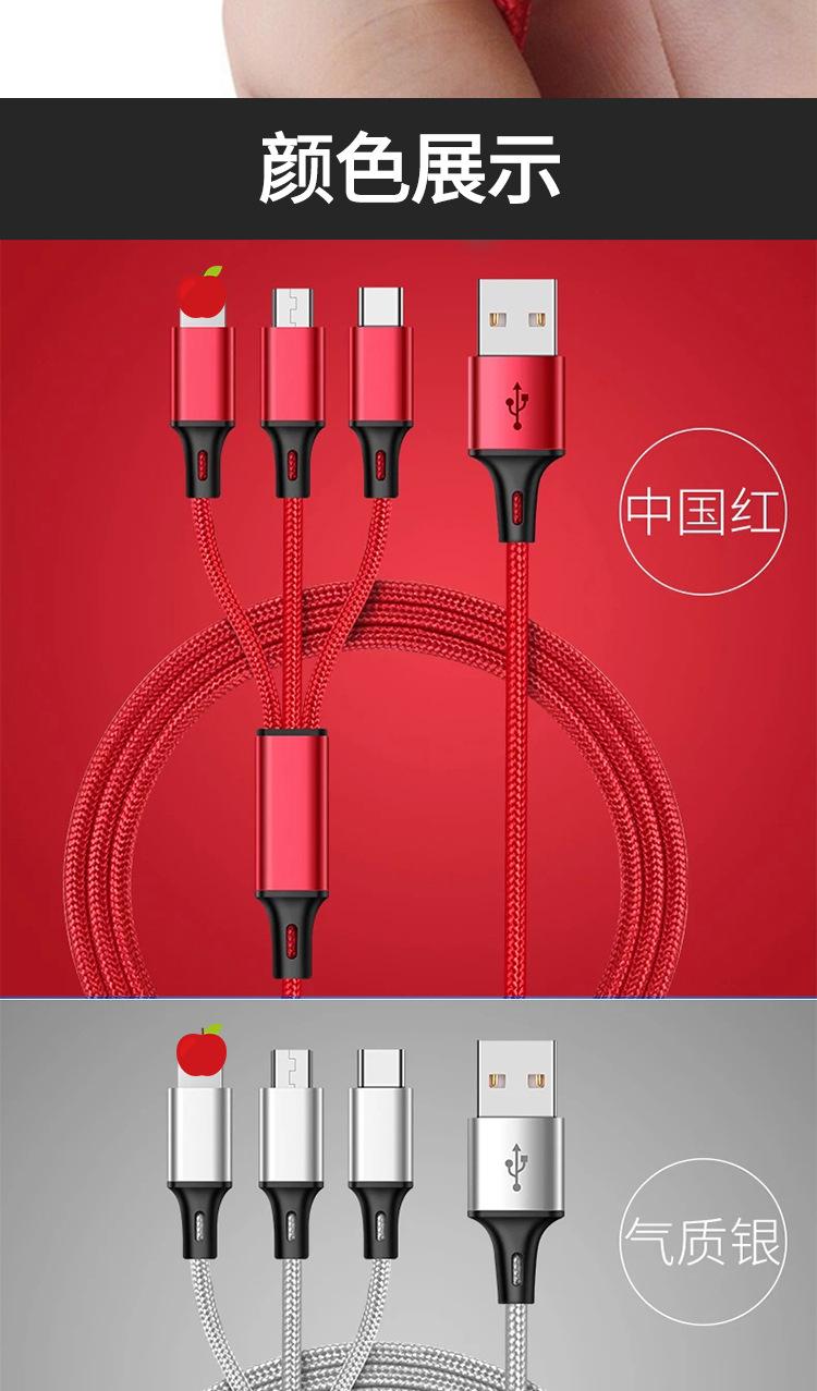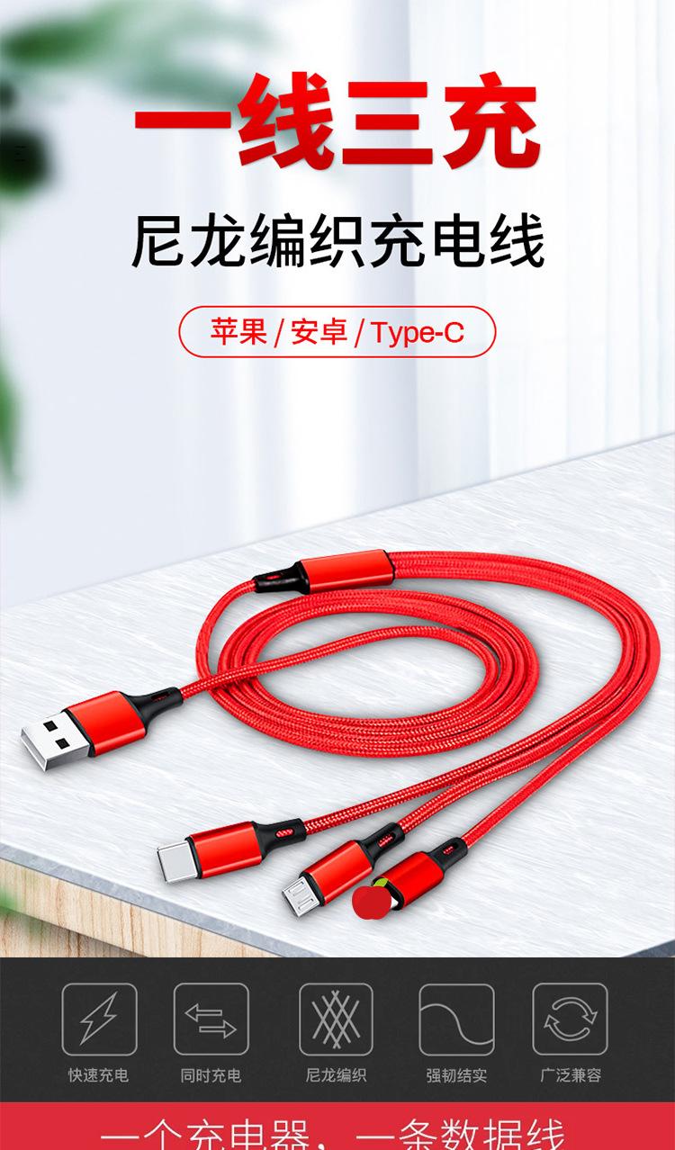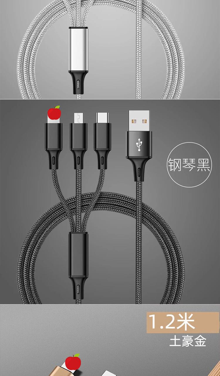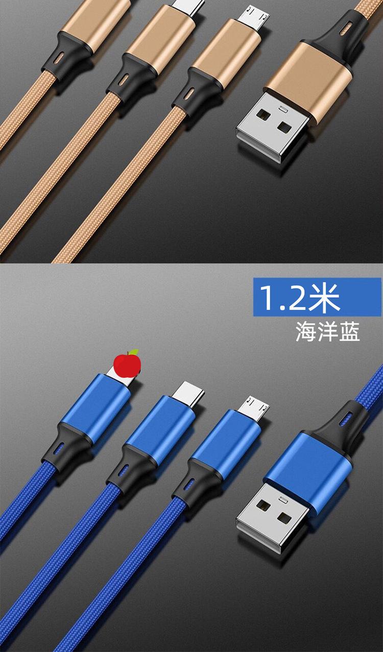 Cable de Carga Tres en Uno Adecuado para Apple Huawei Android Tipo-C Cable de Datos Cable Cargador Uno a Tres Carga Rápida