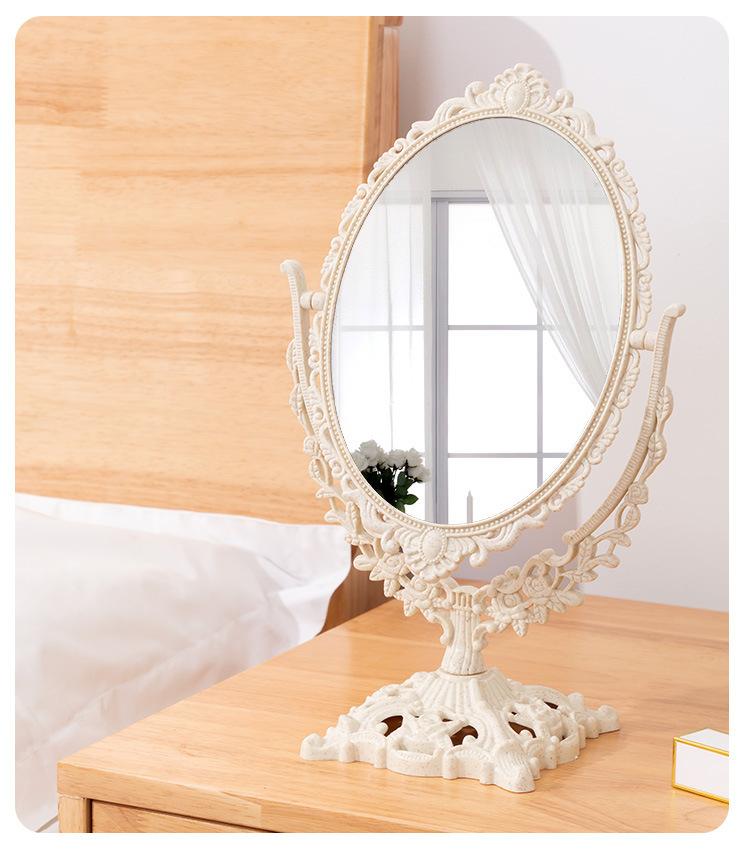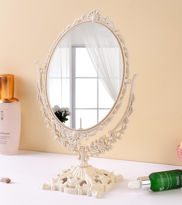 Compra Espejo de escritorio de estilo europeo retro de doble cara, espejo giratorio para dormitorio de estudiantes, espejo de maquillaje HD, espejo de maquillaje al por mayor en Joom.pro