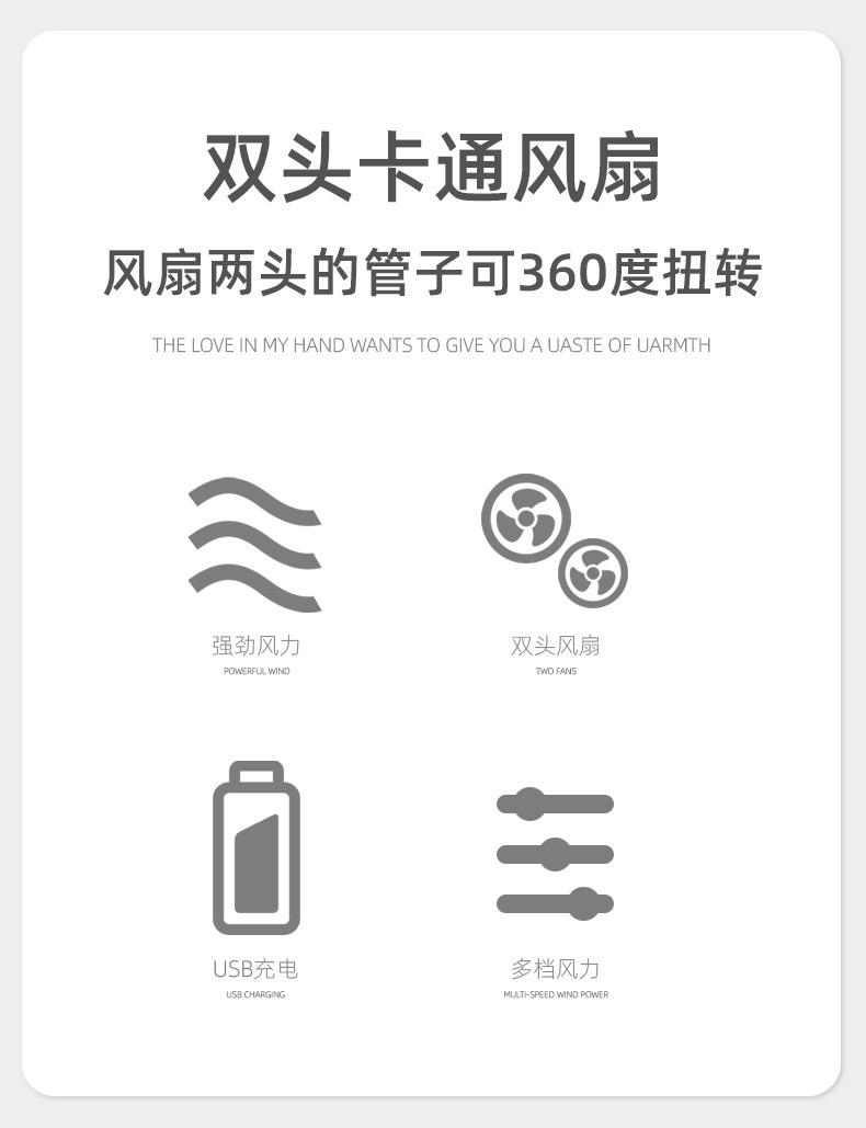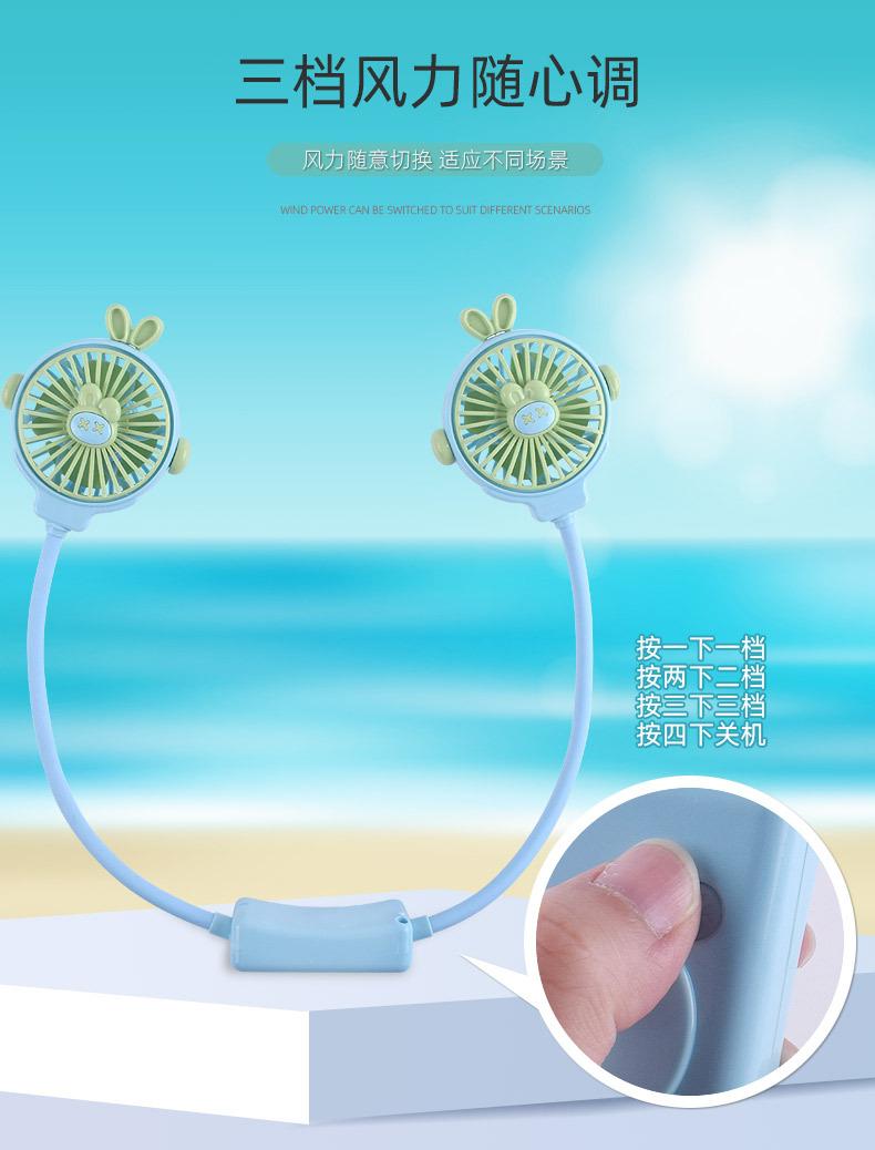 Compra Ventilador de cuello con carga USB para comercio exterior transfronterizo, deportivo, perezoso, de doble cabezal, regalo, ventilador pequeño imprimible de fábrica al por mayor en Joom.pro