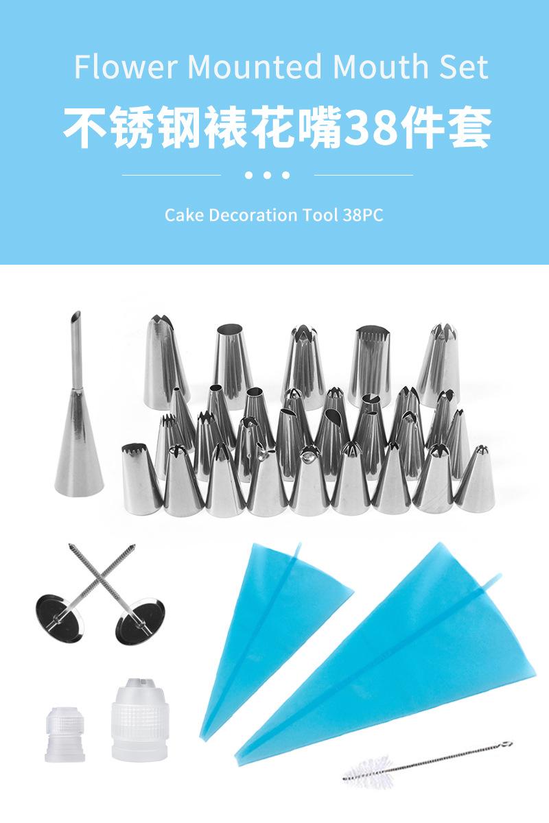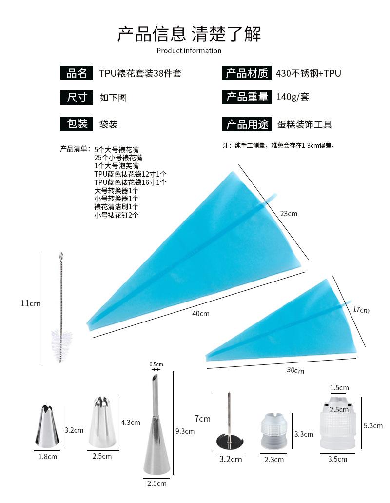 Juego de 38 boquillas para manga pastelera de acero inoxidable con borde cruzado, bolsa de crema de TPU, boquilla para manga pastelera de galletas, herramienta de bricolaje para decoración de pasteles