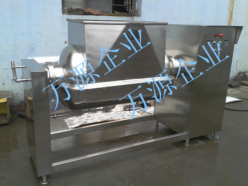 El equipo utiliza un cuerpo de olla hemisférico de acero inoxidable, formado mediante estampación única, y utiliza vapor, gas licuado, gas natural y otros métodos de calentamiento. El método de agitación utiliza una transmisión inclinada especial. El agitador planetario está en contacto total con el cuerpo de la olla, logrando una relación de transmisión no entera entre las revoluciones y la rotación de la transmisión, de modo que no hay ángulo muerto de agitación en la olla. El uso de una avanzada estructura de transmisión y sellado garantiza la limpieza e higiene de la parte de transmisión y la olla. El uso de potencia de regulación de velocidad de frecuencia variable proporciona una operación más estable. El uso de elevación hidráulica, el giro de la olla para transportar materiales y la eliminación de la necesidad de desmontar y montar el agitador ahorran mano de obra y reducen la intensidad del trabajo. Es un equipo de procesamiento de alimentos con un rendimiento excelente.