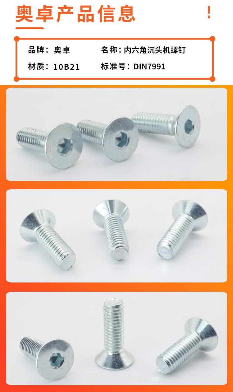 Tornillo de máquina de cabeza avellanada hexagonal con zinc azul y blanco, 10B21, tornillo de máquina de cabeza plana DIN7991
