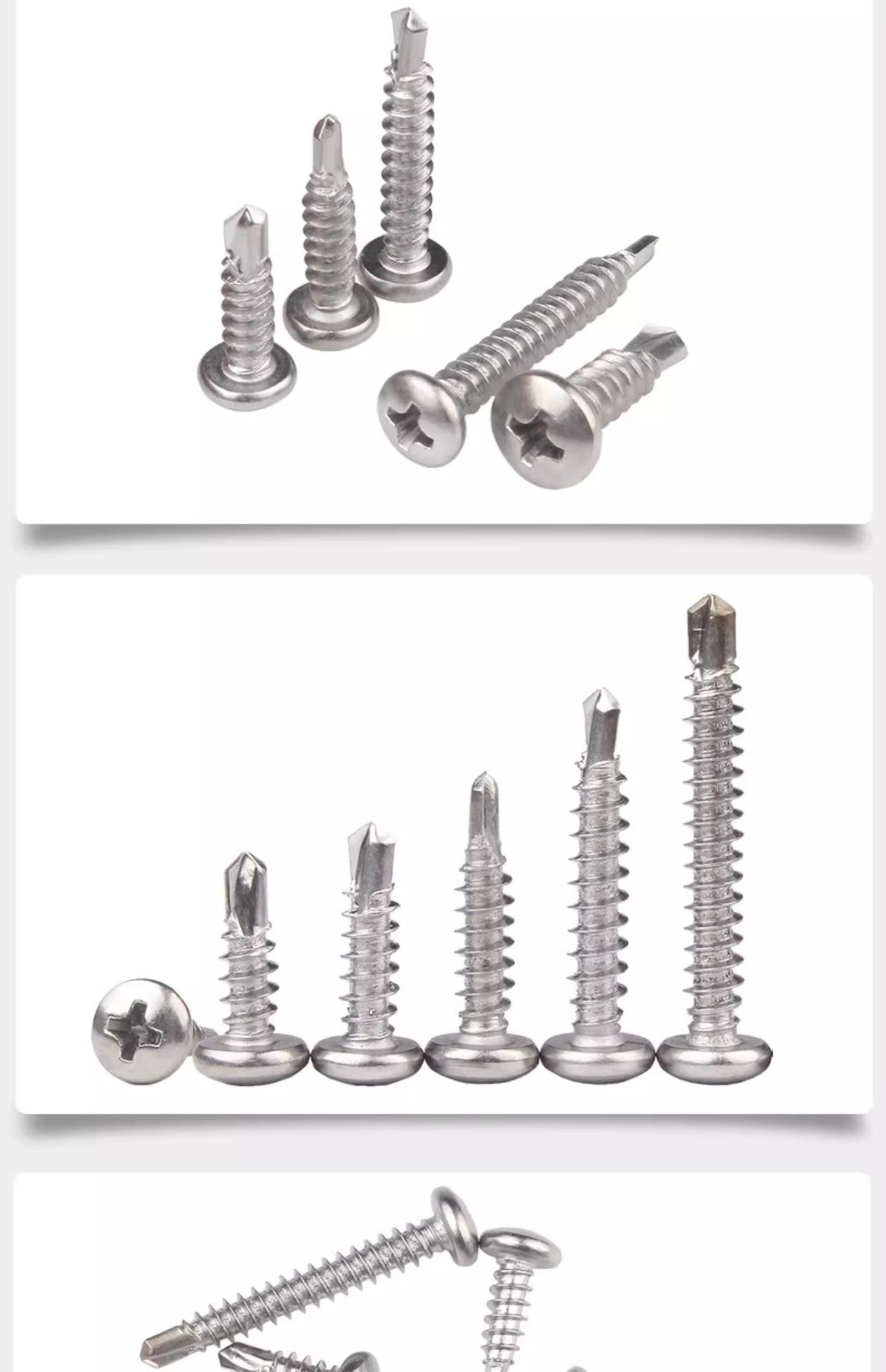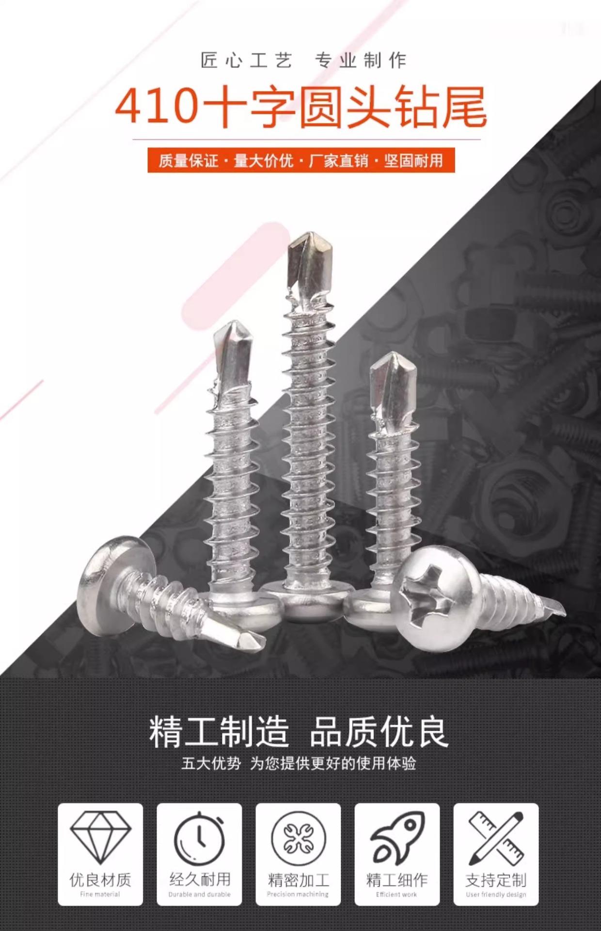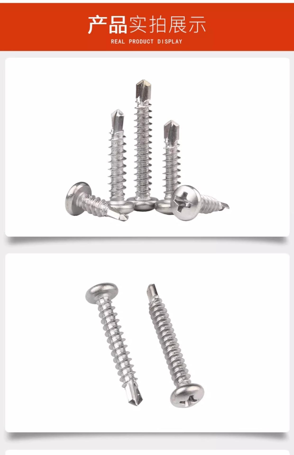 Tornillo autorroscante de cabeza redonda en cruz de acero inoxidable 410, tornillo de cola de milano con cola de milano y cabeza plana, M4.2M4.8/M5.5