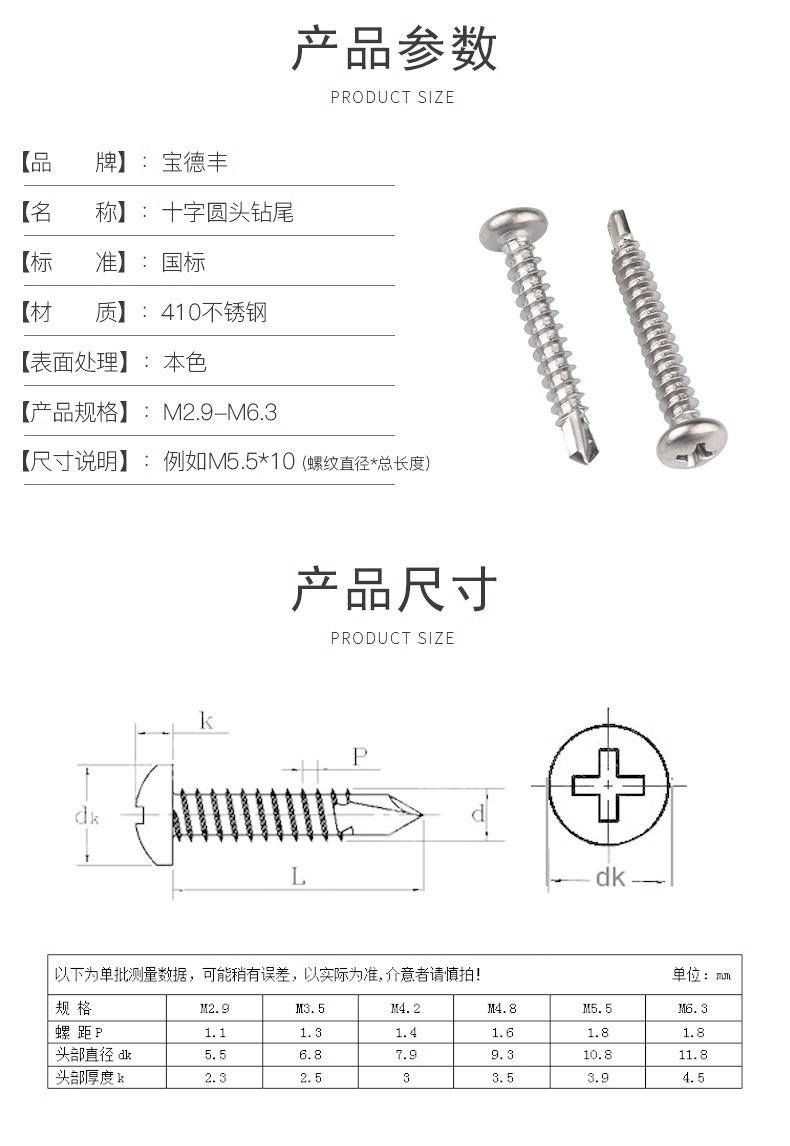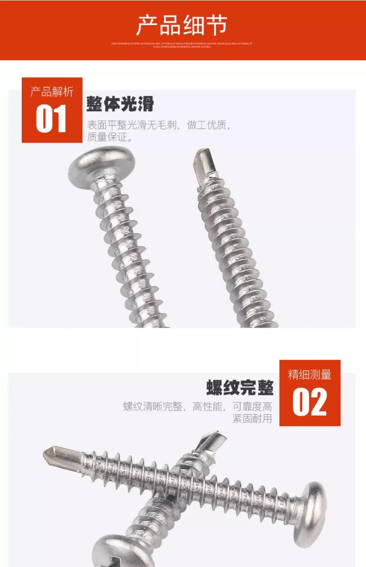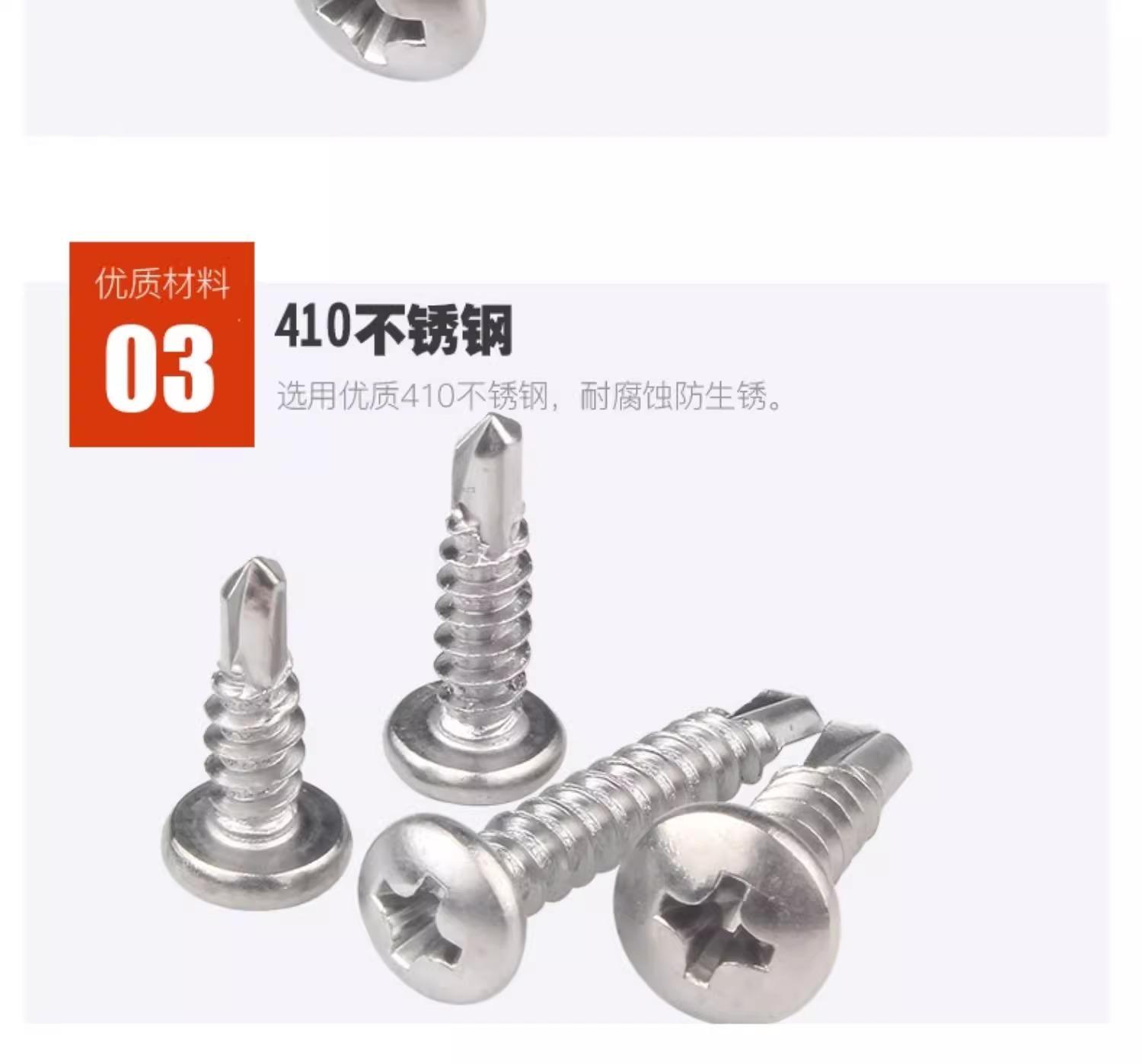 Tornillo autorroscante de cabeza redonda en cruz de acero inoxidable 410, tornillo de cola de milano con cola de milano y cabeza plana, M4.2M4.8/M5.5