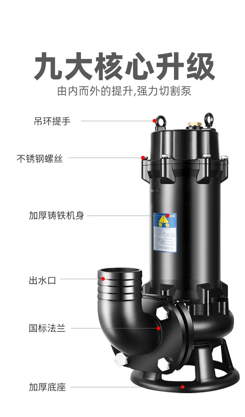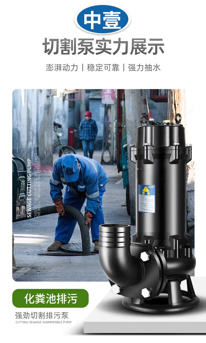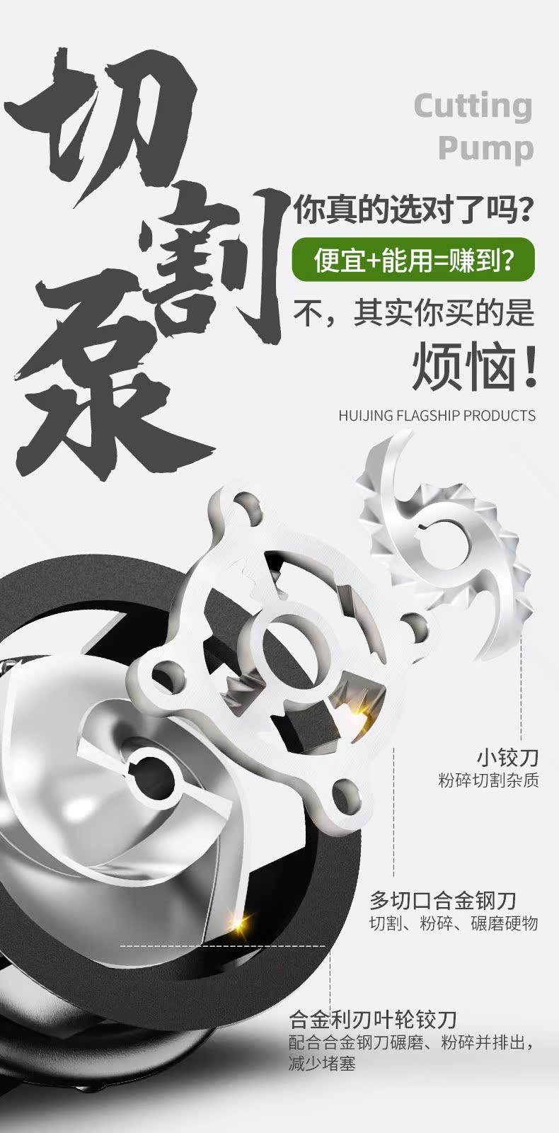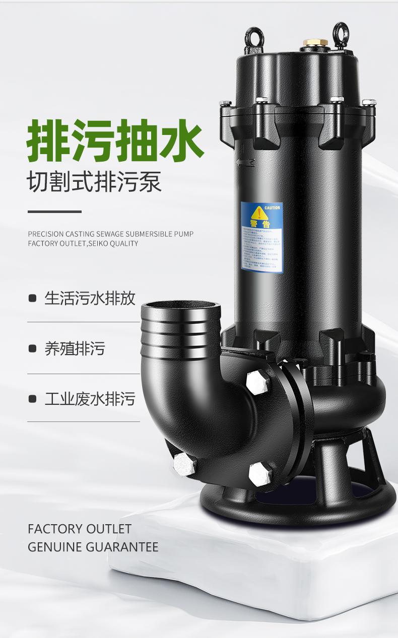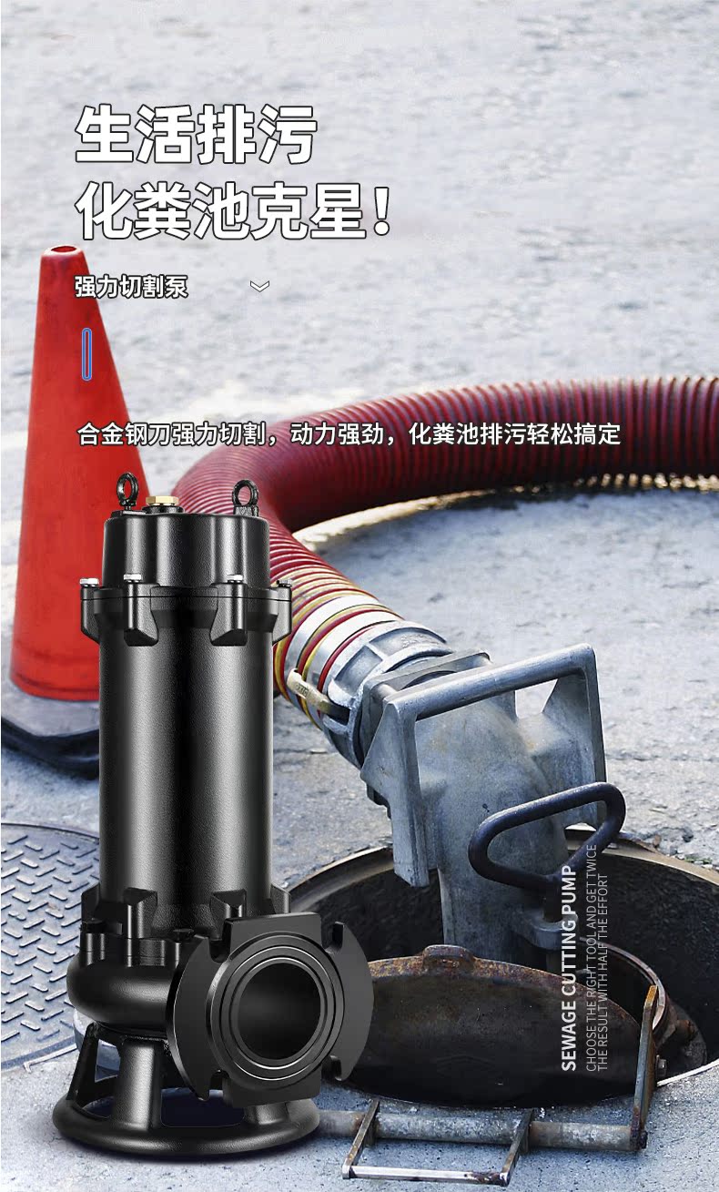 Bomba sumergible de aguas residuales de corte estándar nacional de 220 V, bomba de estiércol para tanque séptico pequeño, bomba de lodo para estanque de 380 V