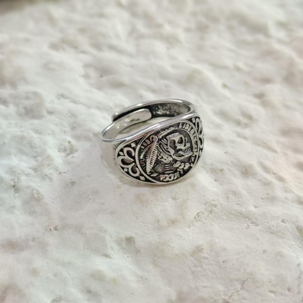Anillo Pixiu de plata vintage con rubí para hombre Anillo de la suerte con moneda de cobre Sutra del Corazón anillo para hombre dominante en vivo fabricante