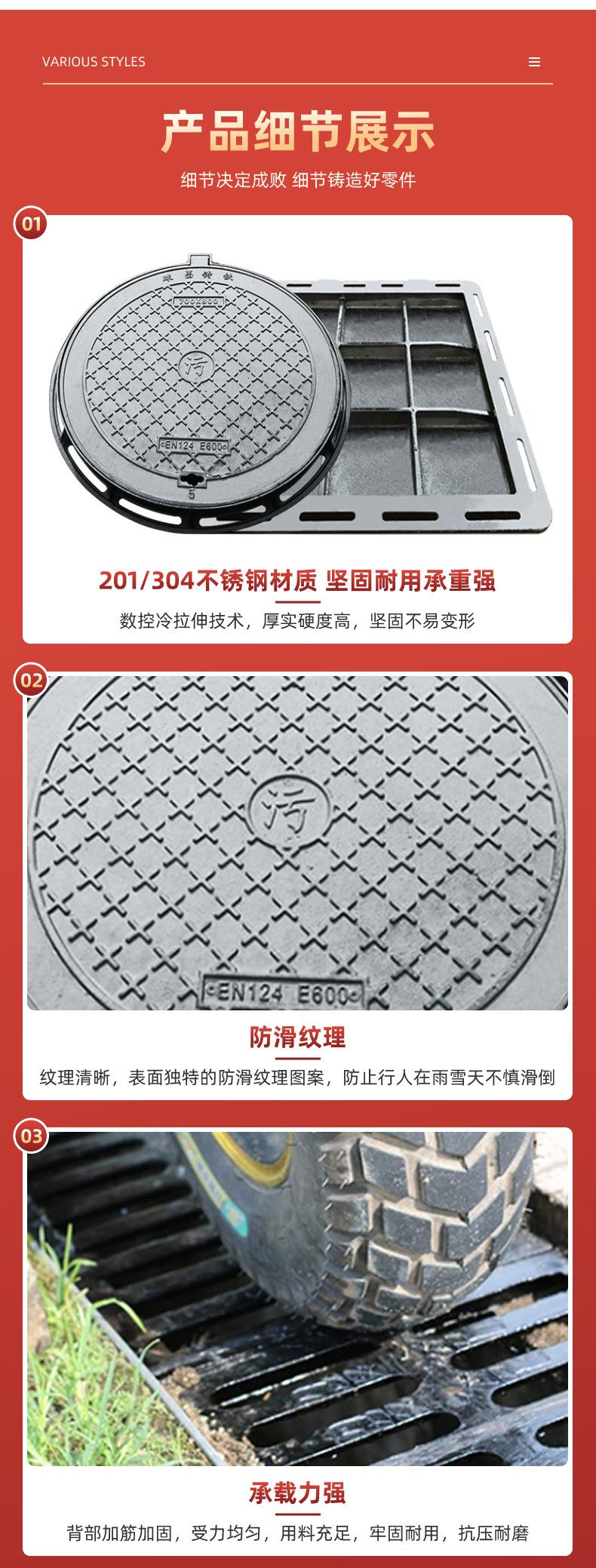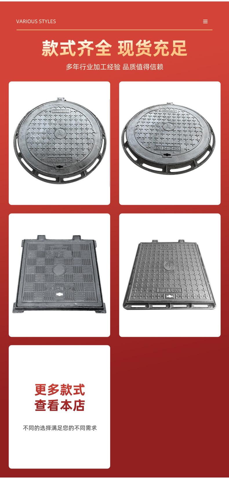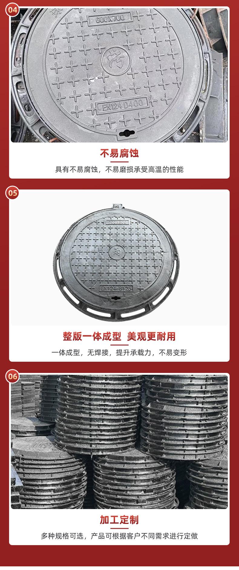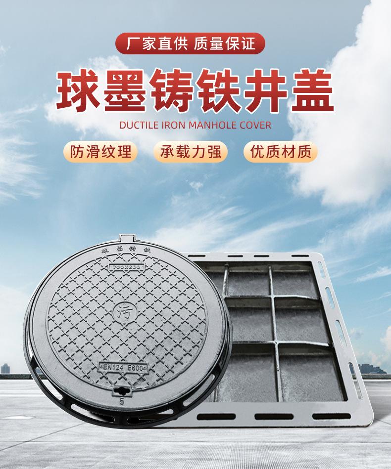 Tapa de registro de hierro fundido nodular, tapa de registro redonda para aguas pluviales y residuales, tapa de registro cuadrada, placa de cubierta de zanja de pozo Yin de alcantarillado pesado