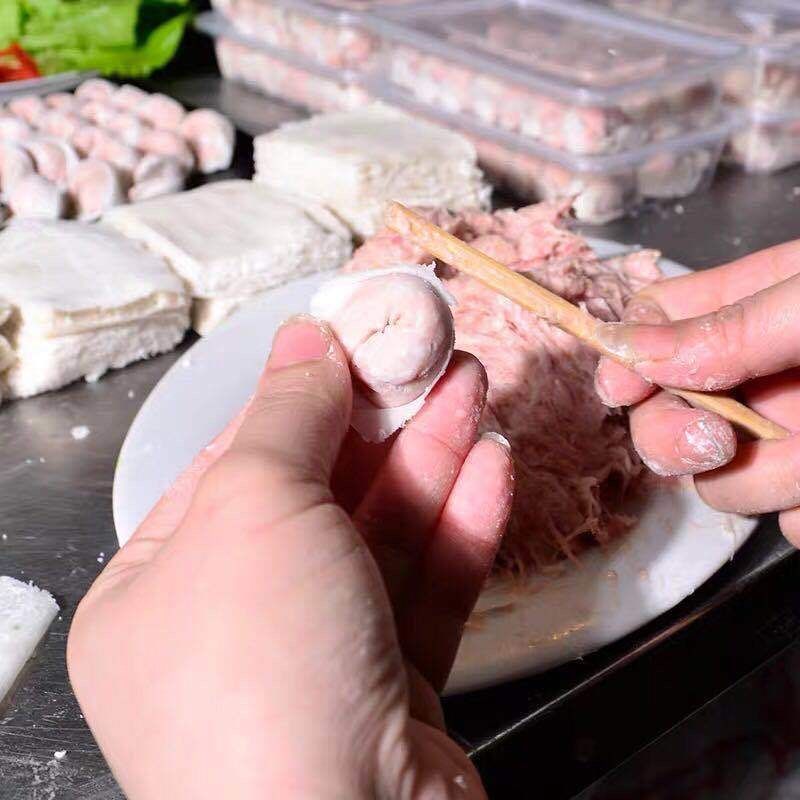 Dumplings de piel de pescado hechos a mano de Chaoshan, bolas de pescado auténticas, dumplings frescos de piel de pescado, especialidad de Chaozhou, olla caliente, olla caliente picante, ingredientes para oden