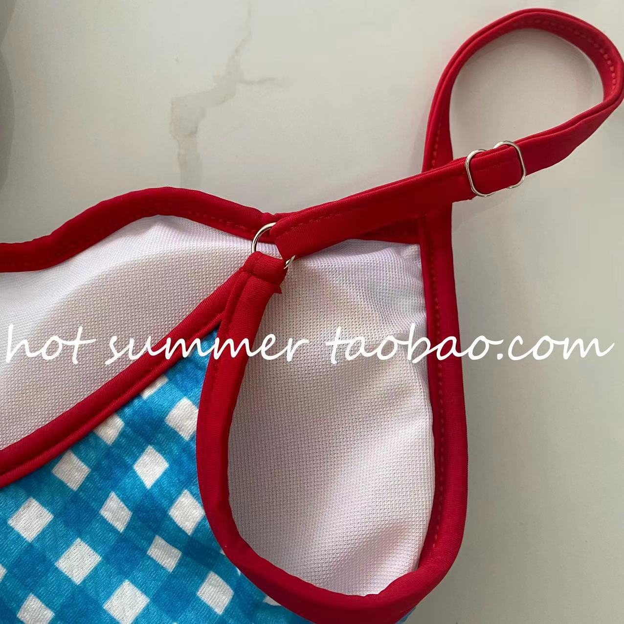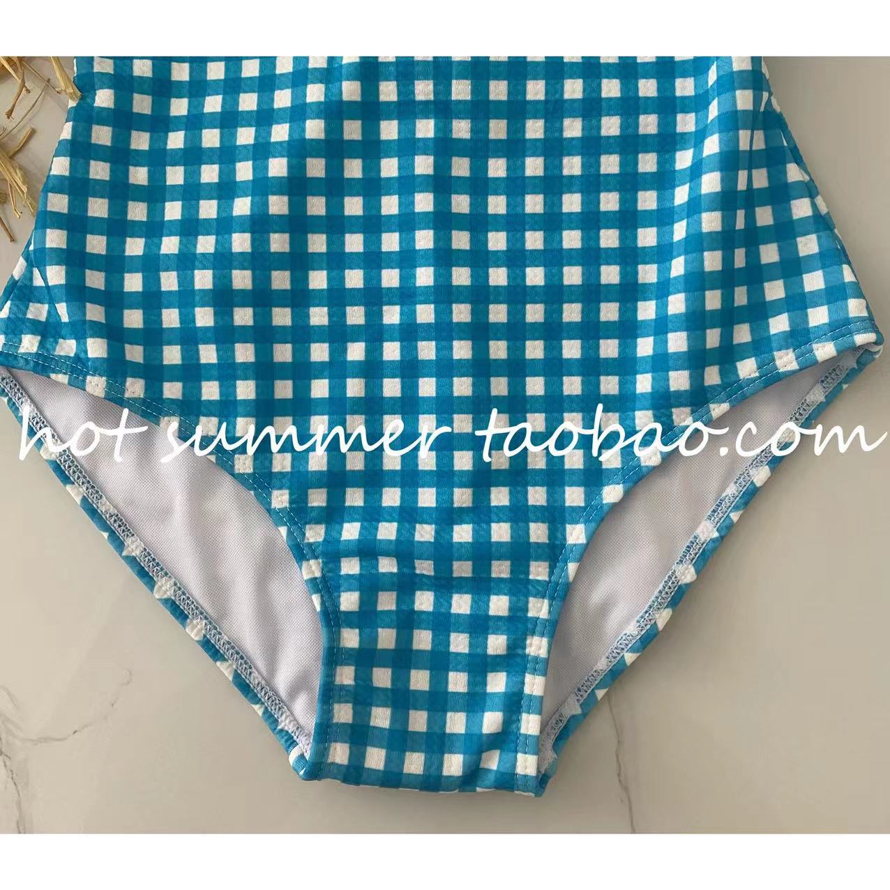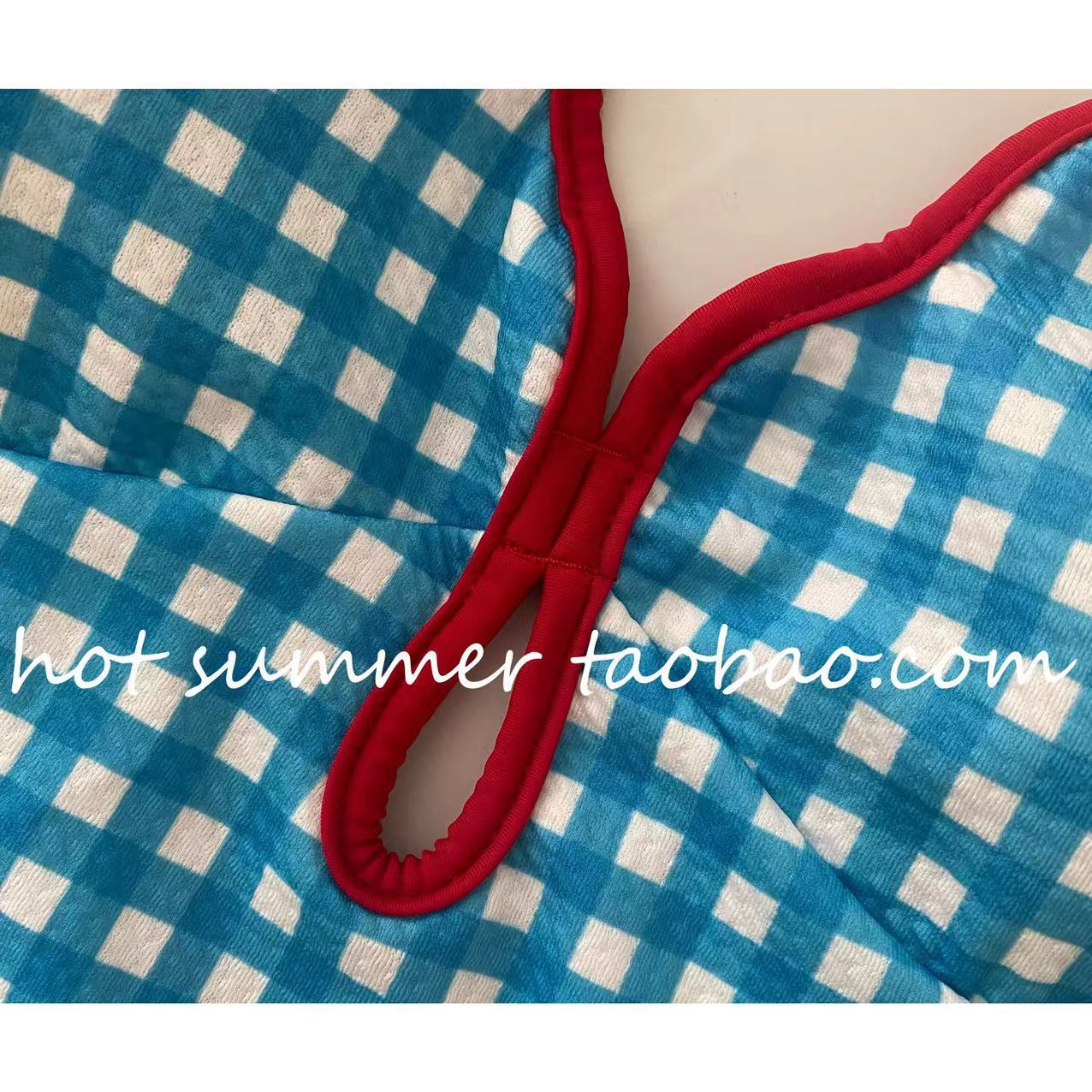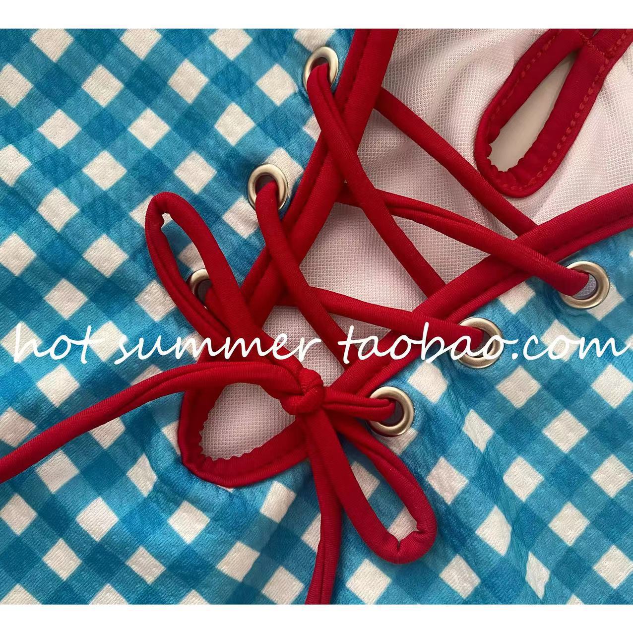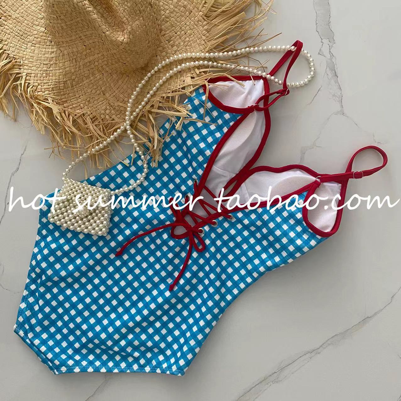 Traje de baño de una pieza a cuadros azules para mujer, nuevo bikini de alta gama de verano para vacaciones en la playa, aguas termales, traje de baño sexy