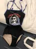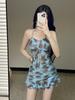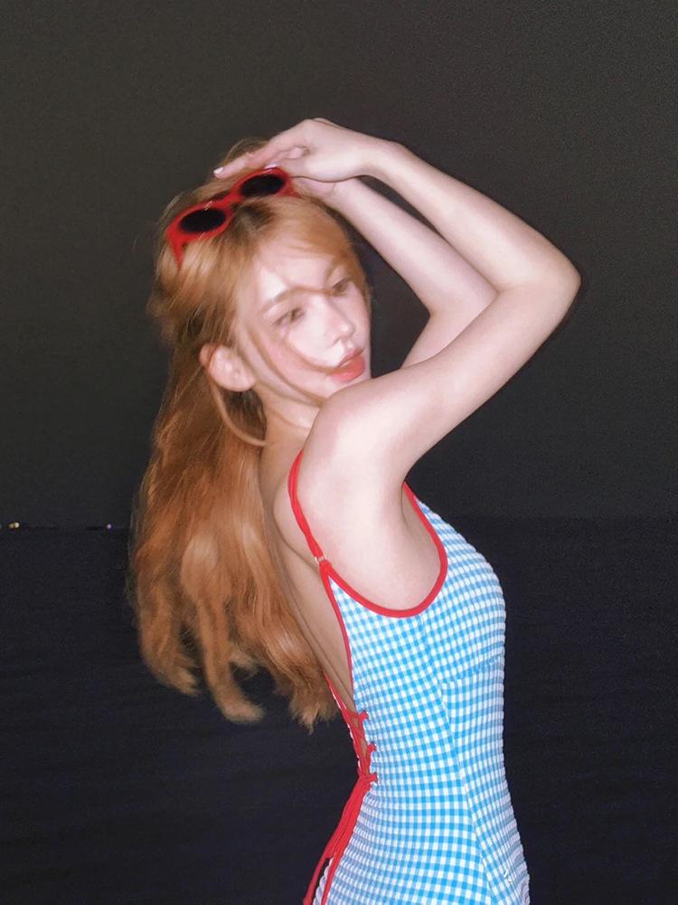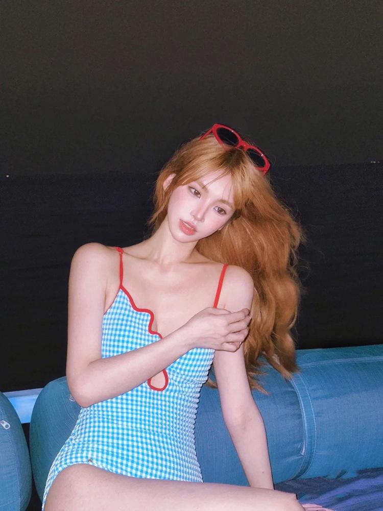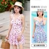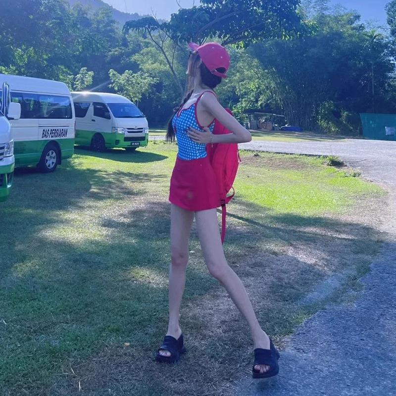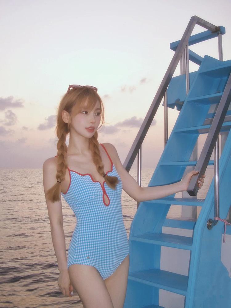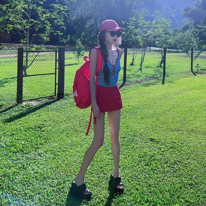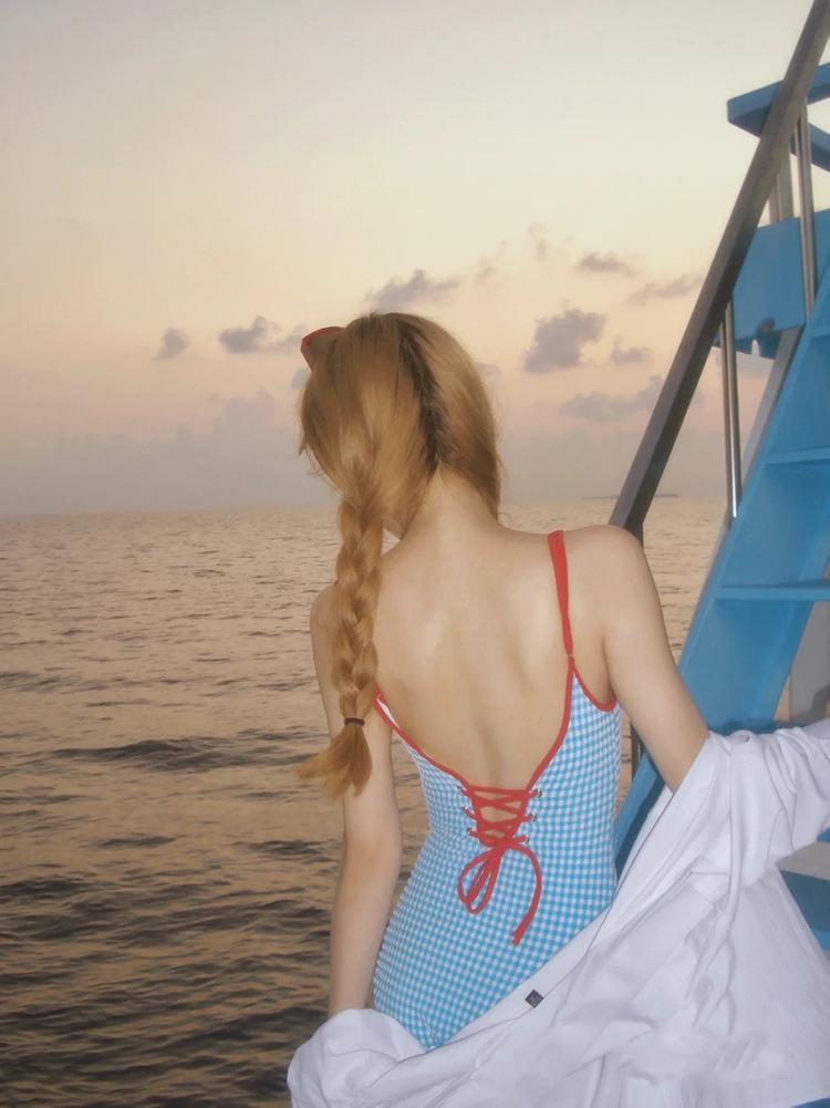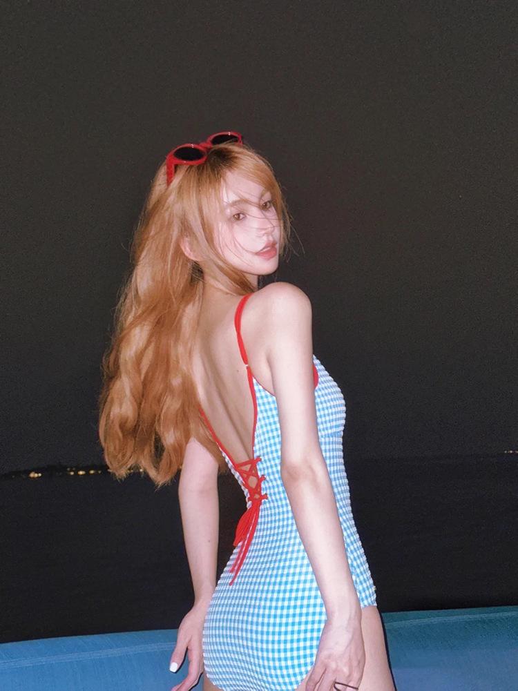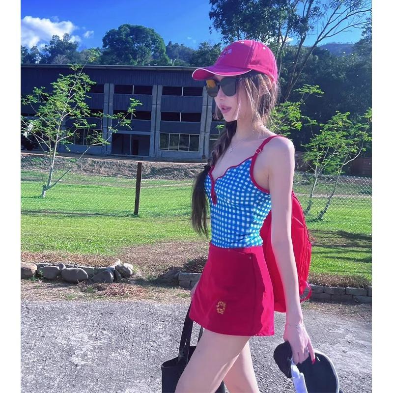 Traje de baño de una pieza a cuadros azules para mujer, nuevo bikini de alta gama de verano para vacaciones en la playa, aguas termales, traje de baño sexy