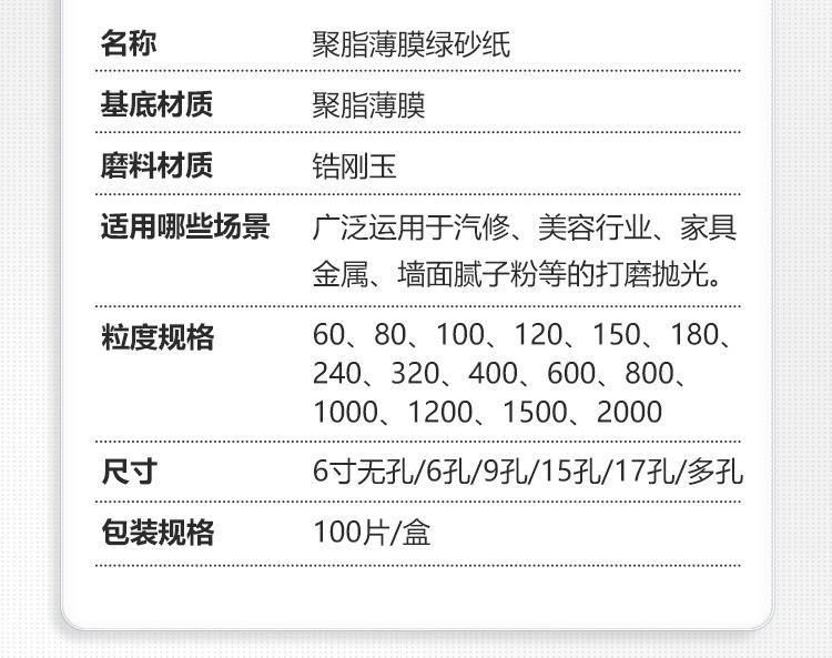 Lija de Flocado de Arena Verde de Película de Poliéster Masilla para Coche Gris Disco de Pulido Lija Pulido Lija de Lijado Ultrafina