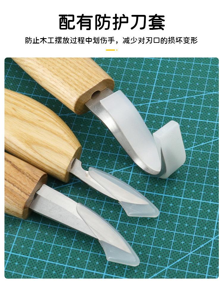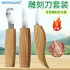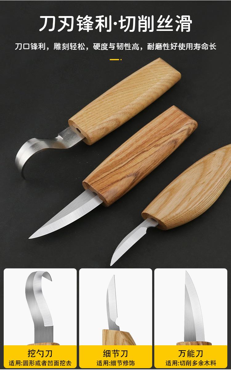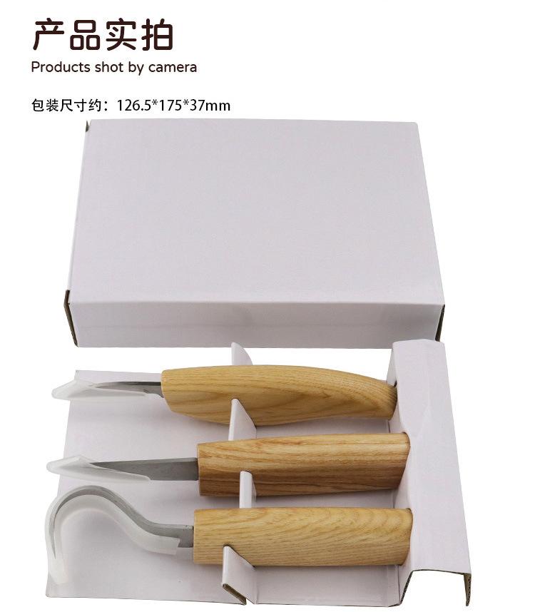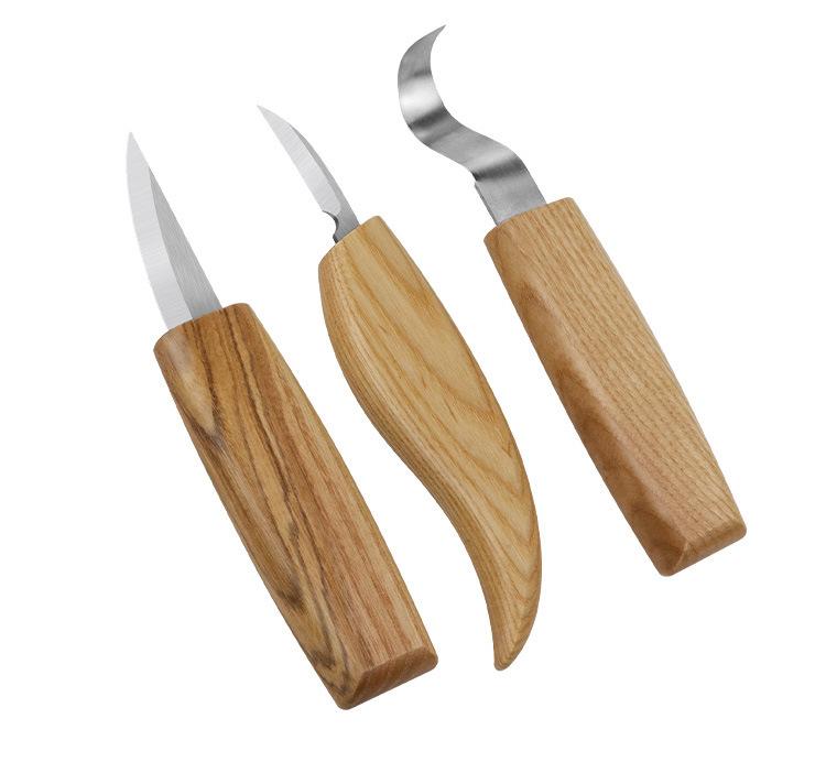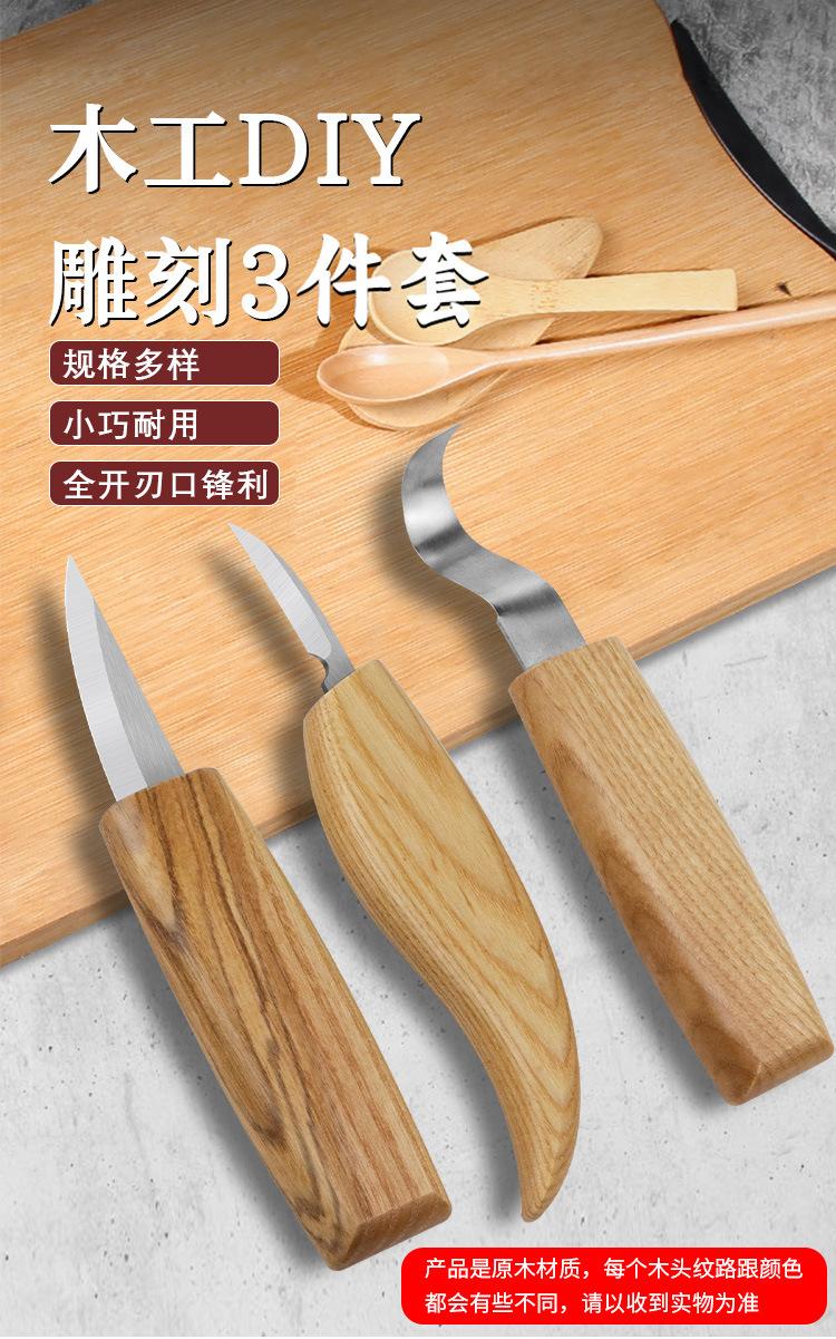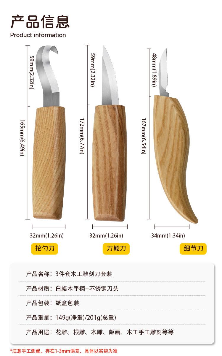 Juego de 3 cuchillos para tallar madera con patrón tallado a mano, cuchillo raspador, cuchara, herramienta para tallar madera